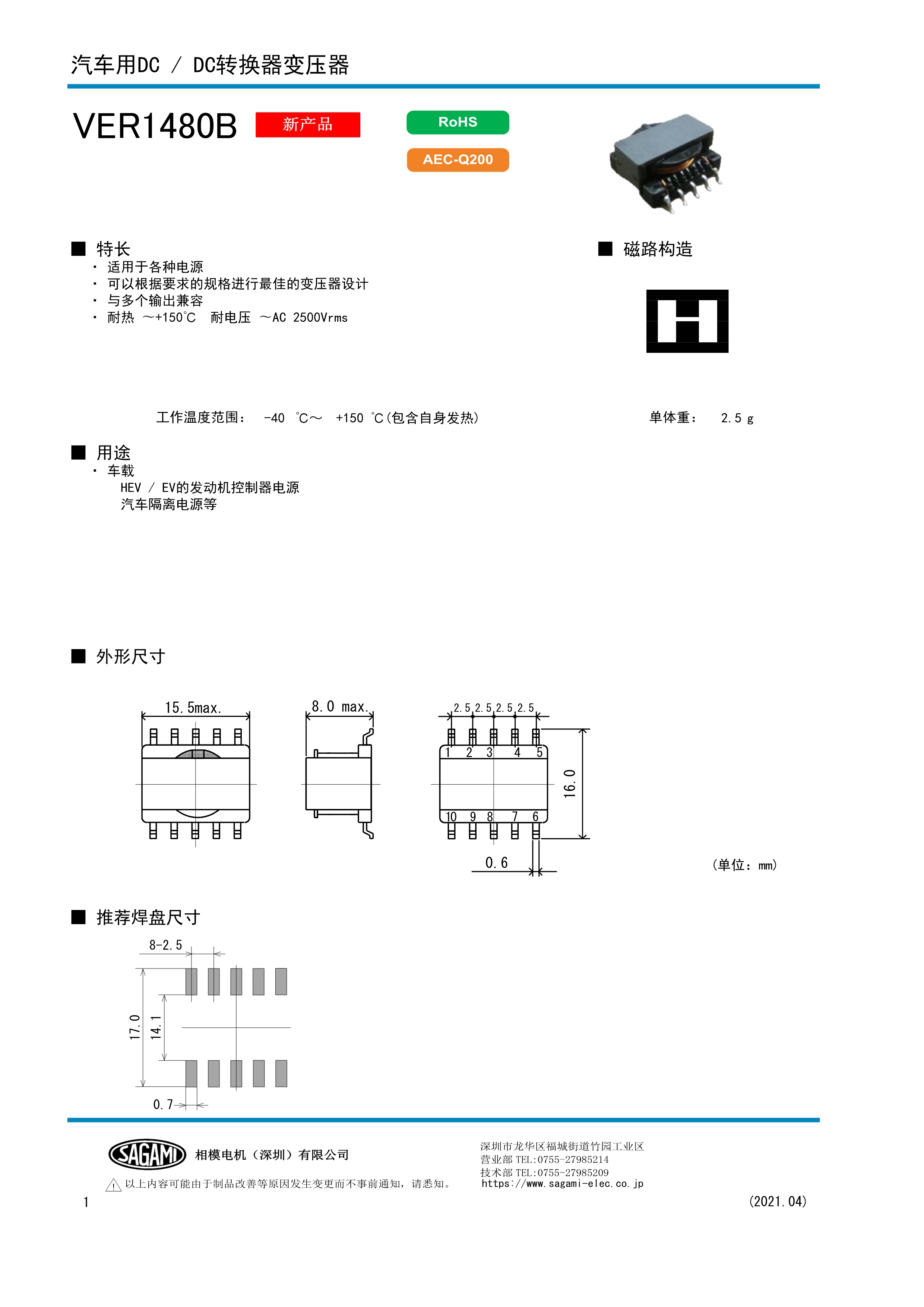 SAGAMI变压器VER1480B系列