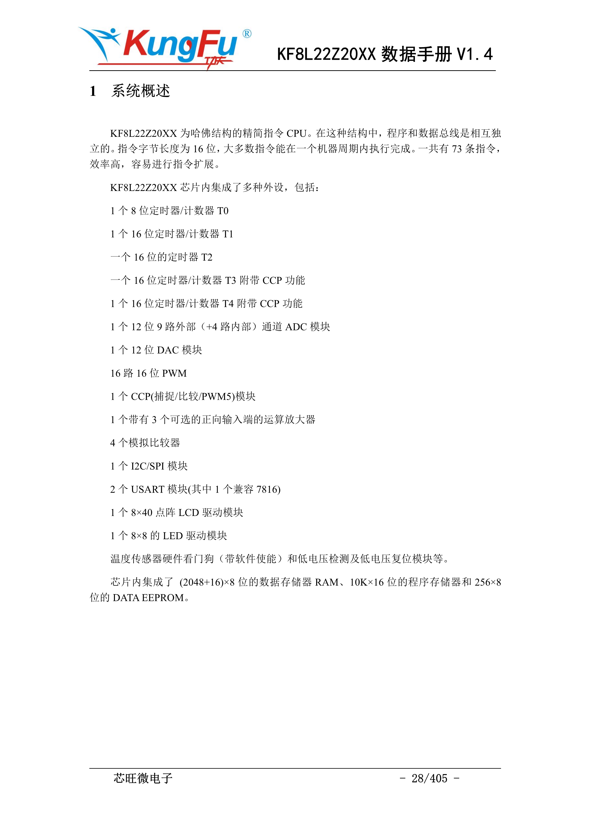 芯旺微通用MCU KF8L22Z20XX系列