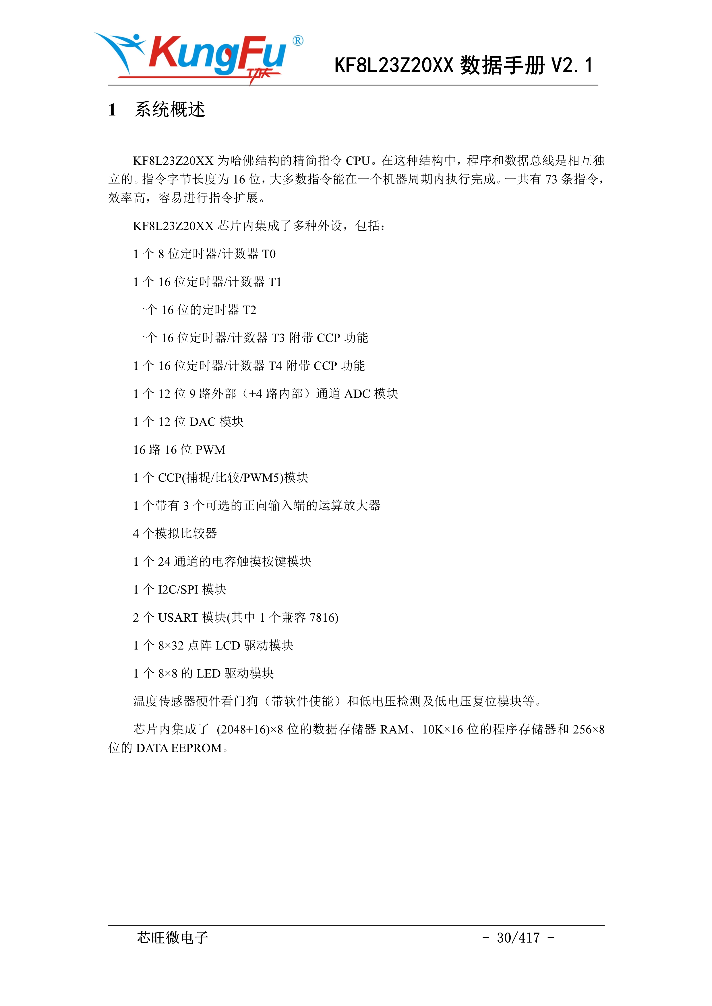 芯旺微通用MCU KF8L23Z20XX系列