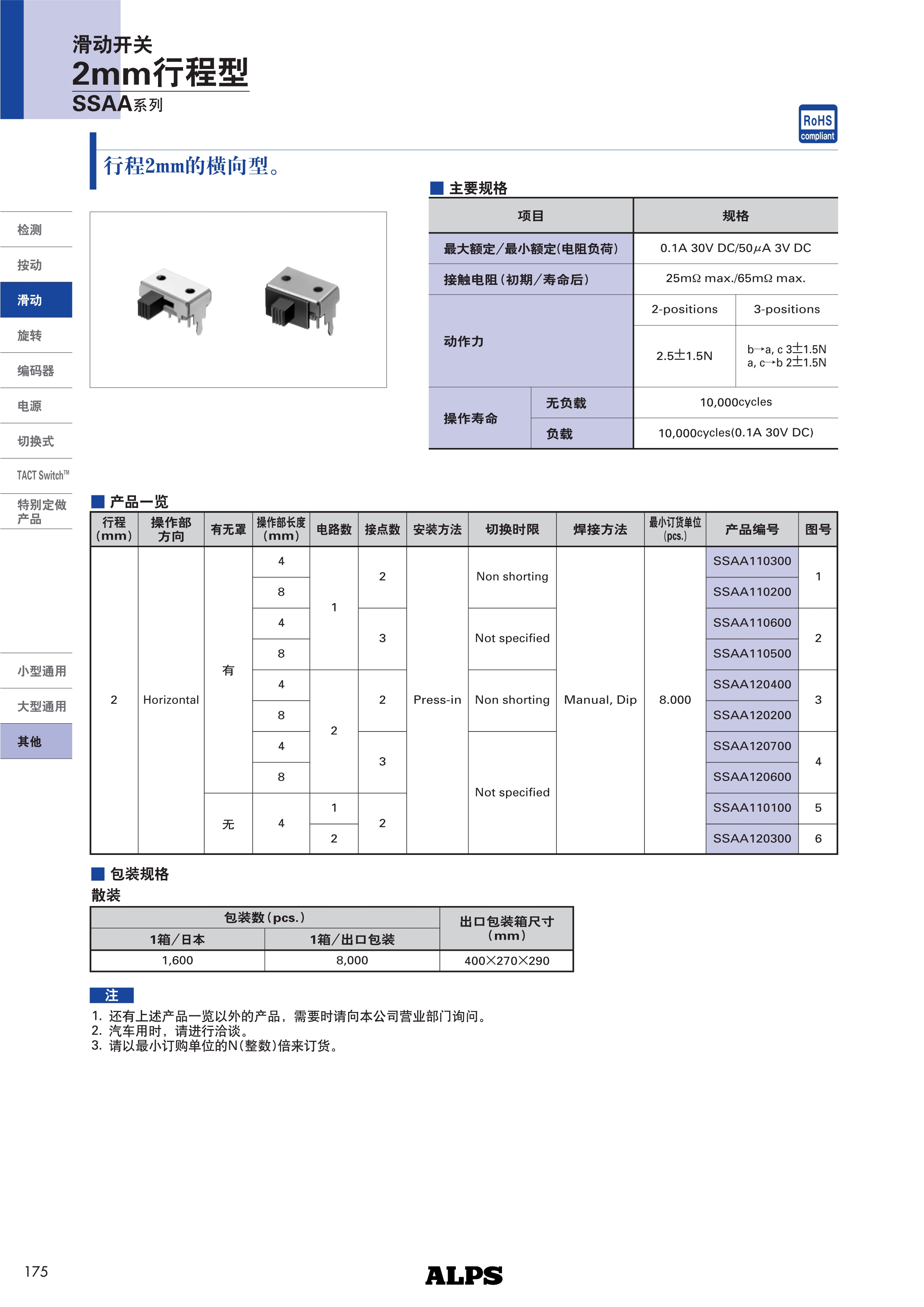 ALPS滑动开关SSAA系列