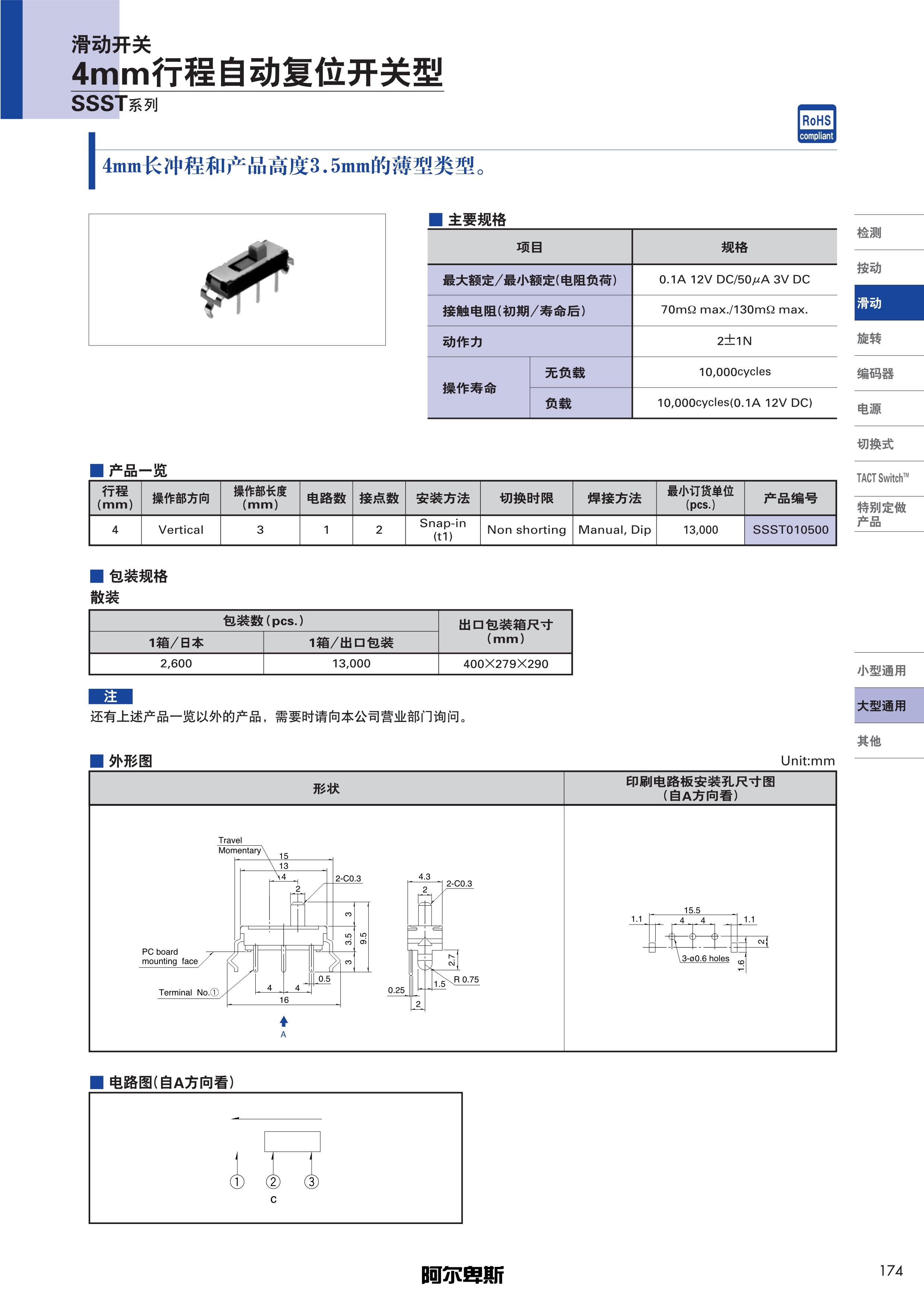 ALPS滑动开关SSST系列