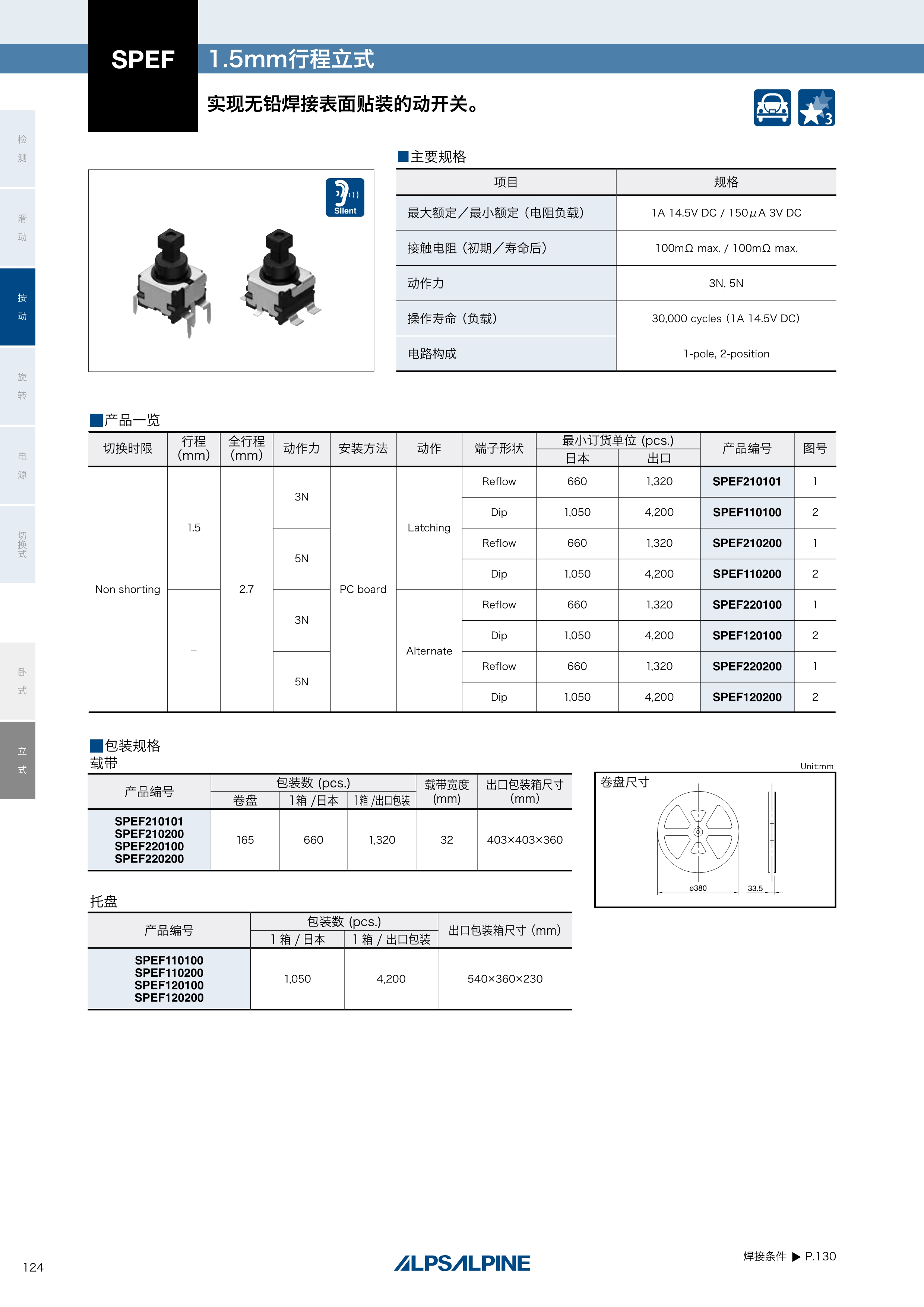 ALPS按动开关SPEF系列