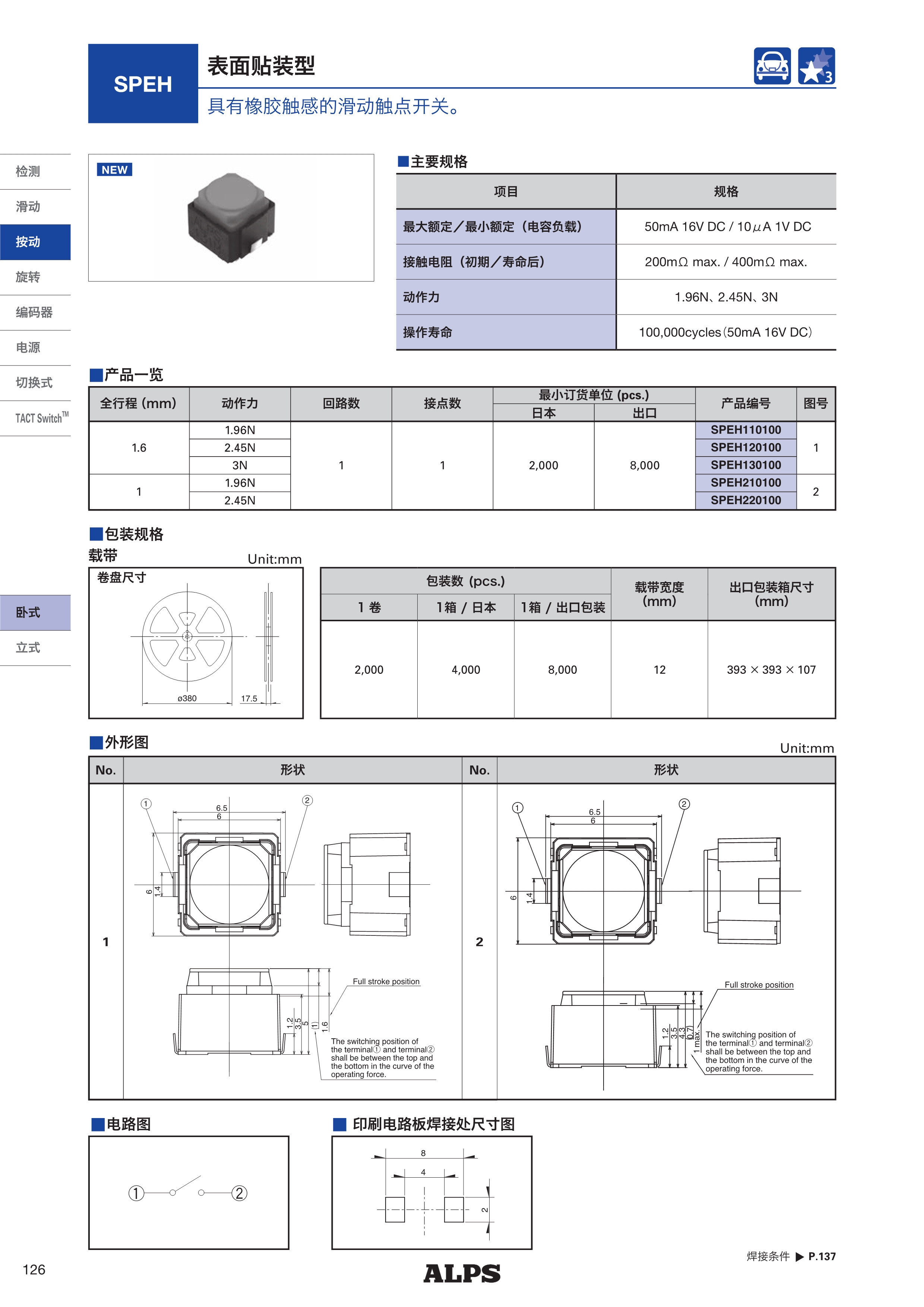 ALPS按动开关SPEH系列
