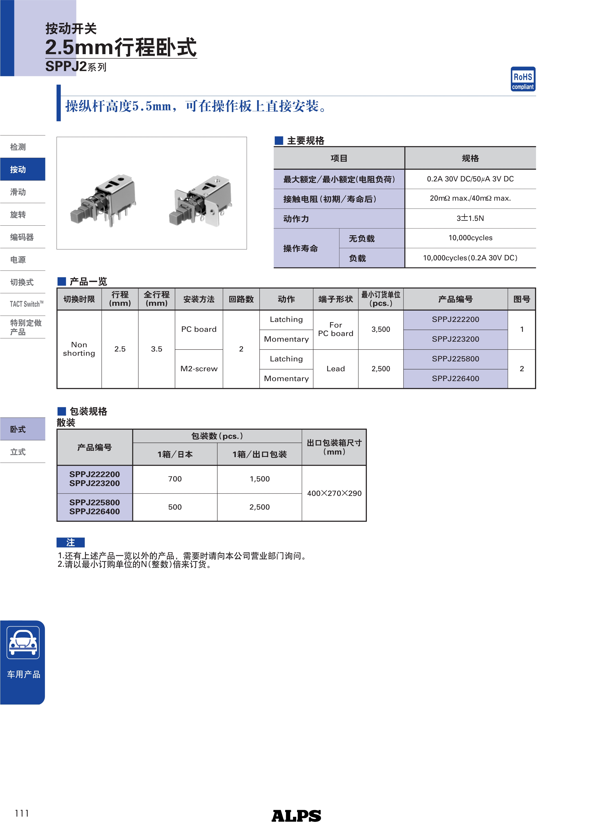 ALPS按动开关SPPJ2系列