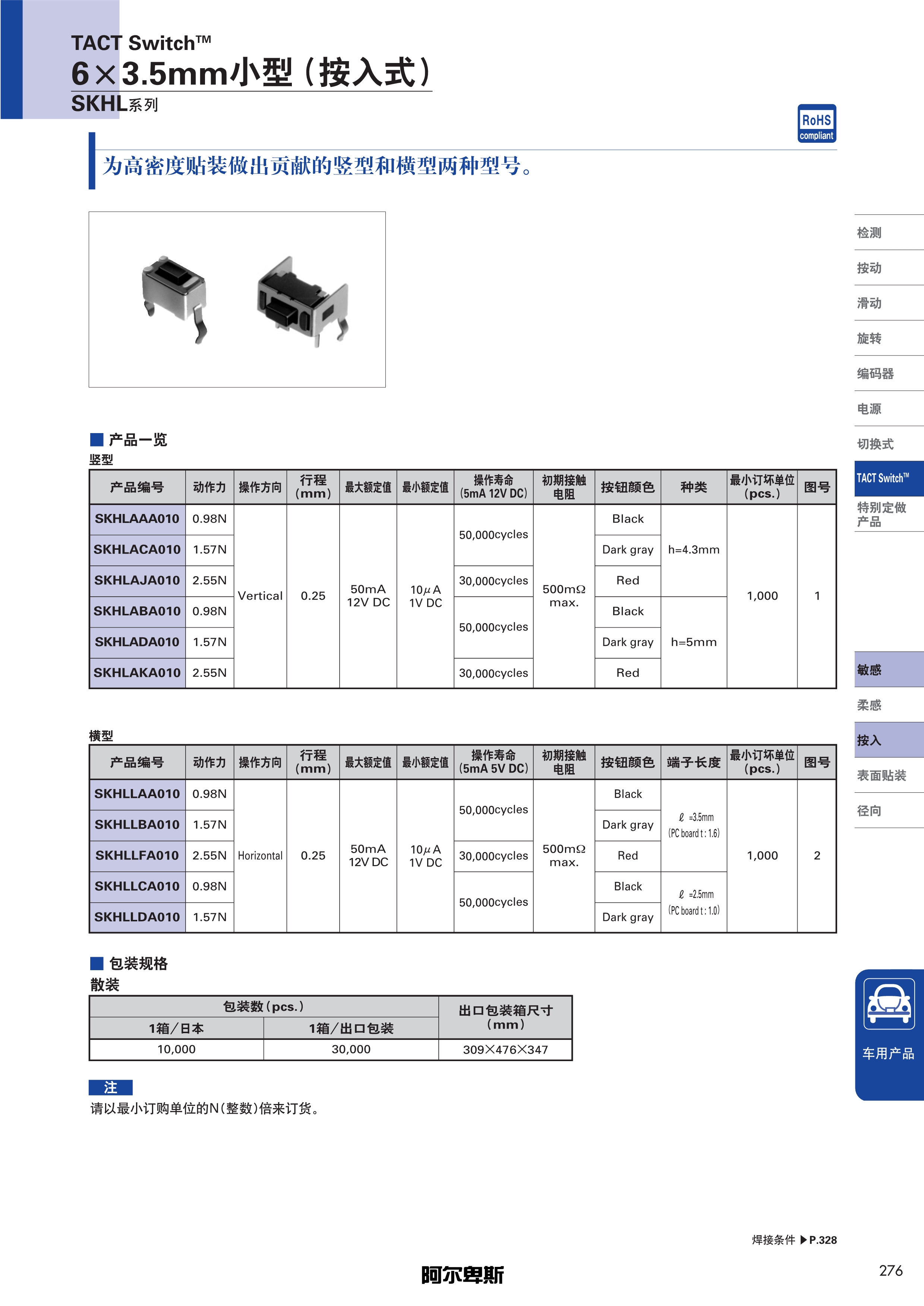 ALPS轻触开关SKHL系列
