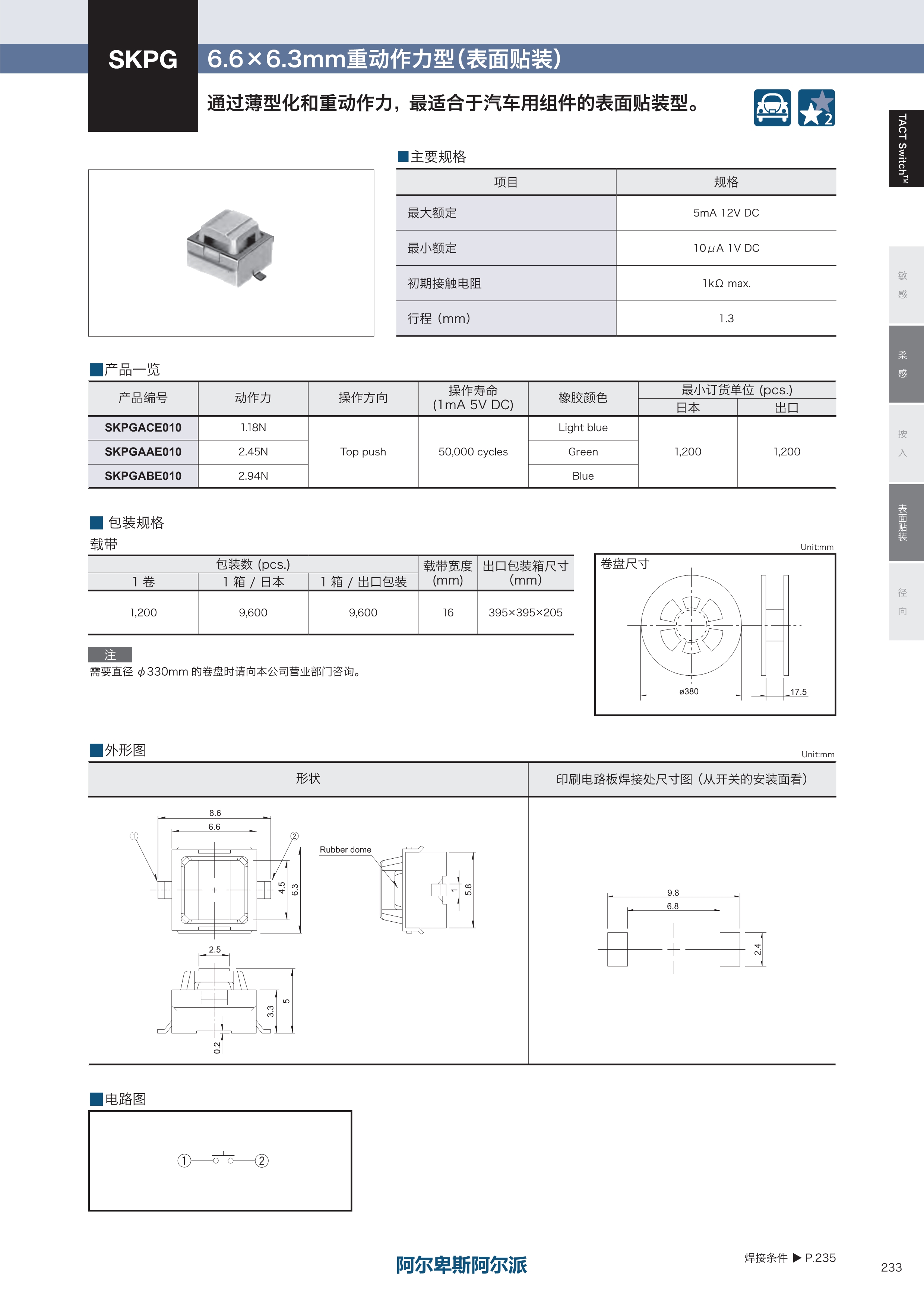 ALPS轻触开关SKPG系列