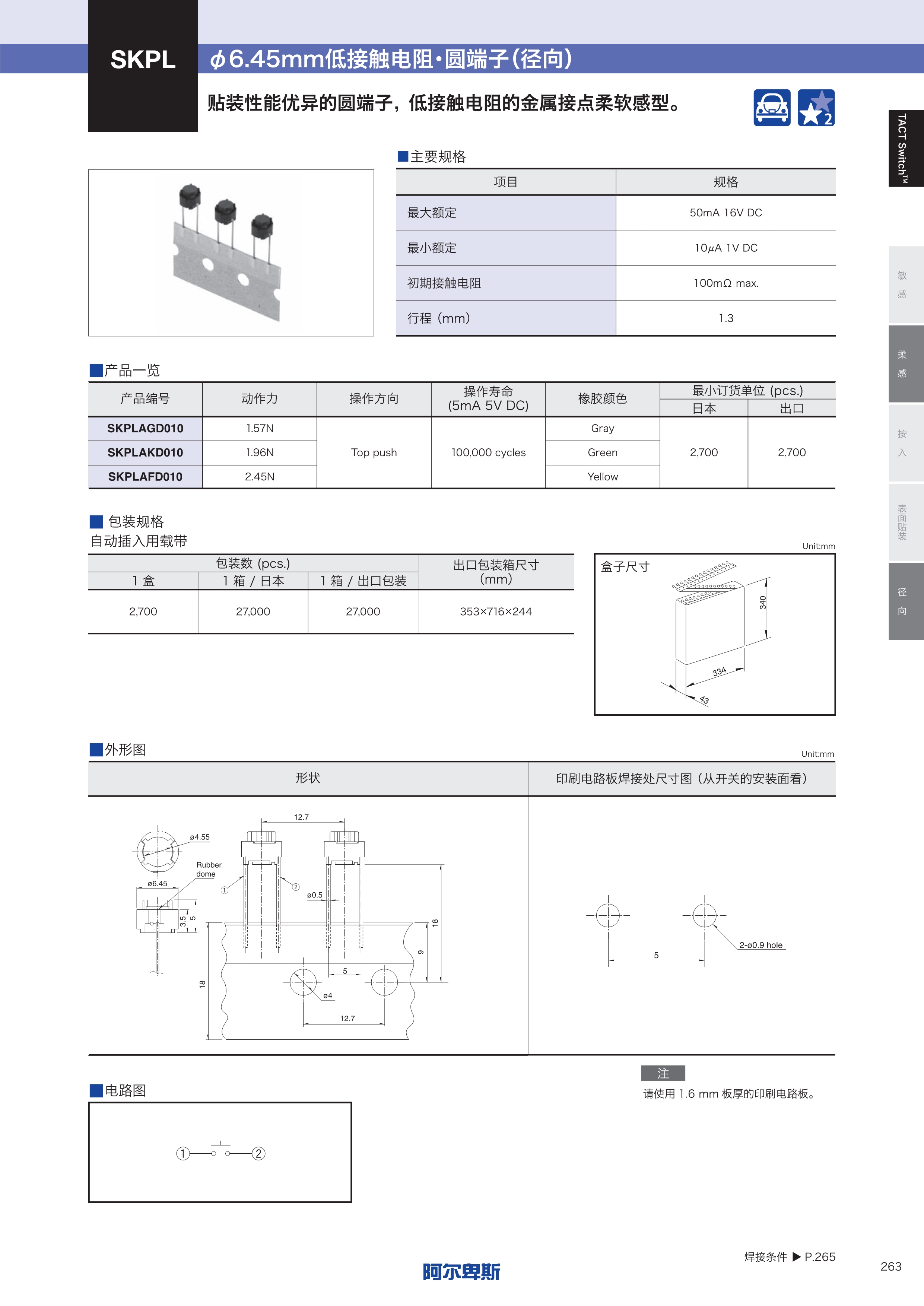 ALPS轻触开关SKPL系列