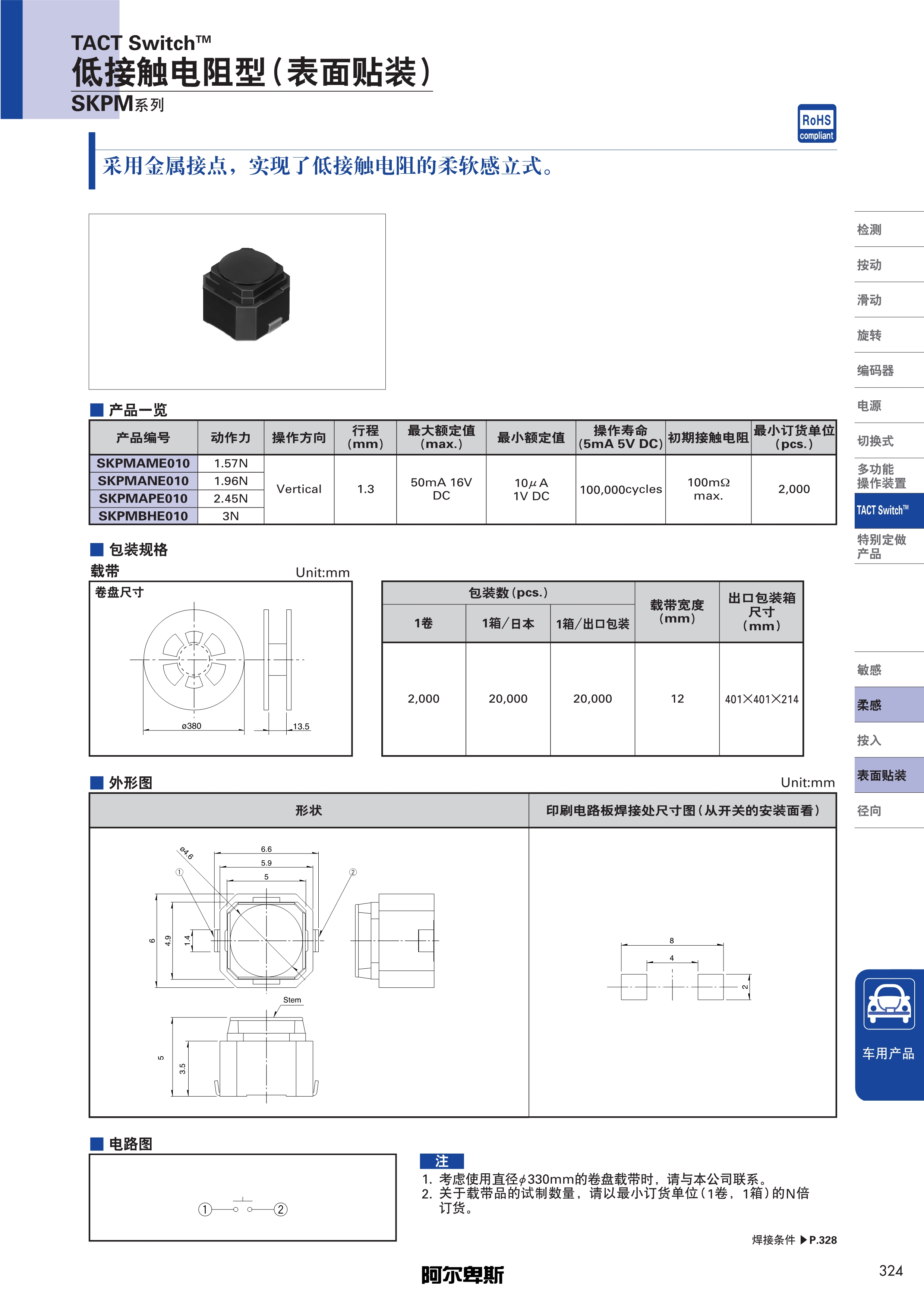 ALPS轻触开关SKPM系列