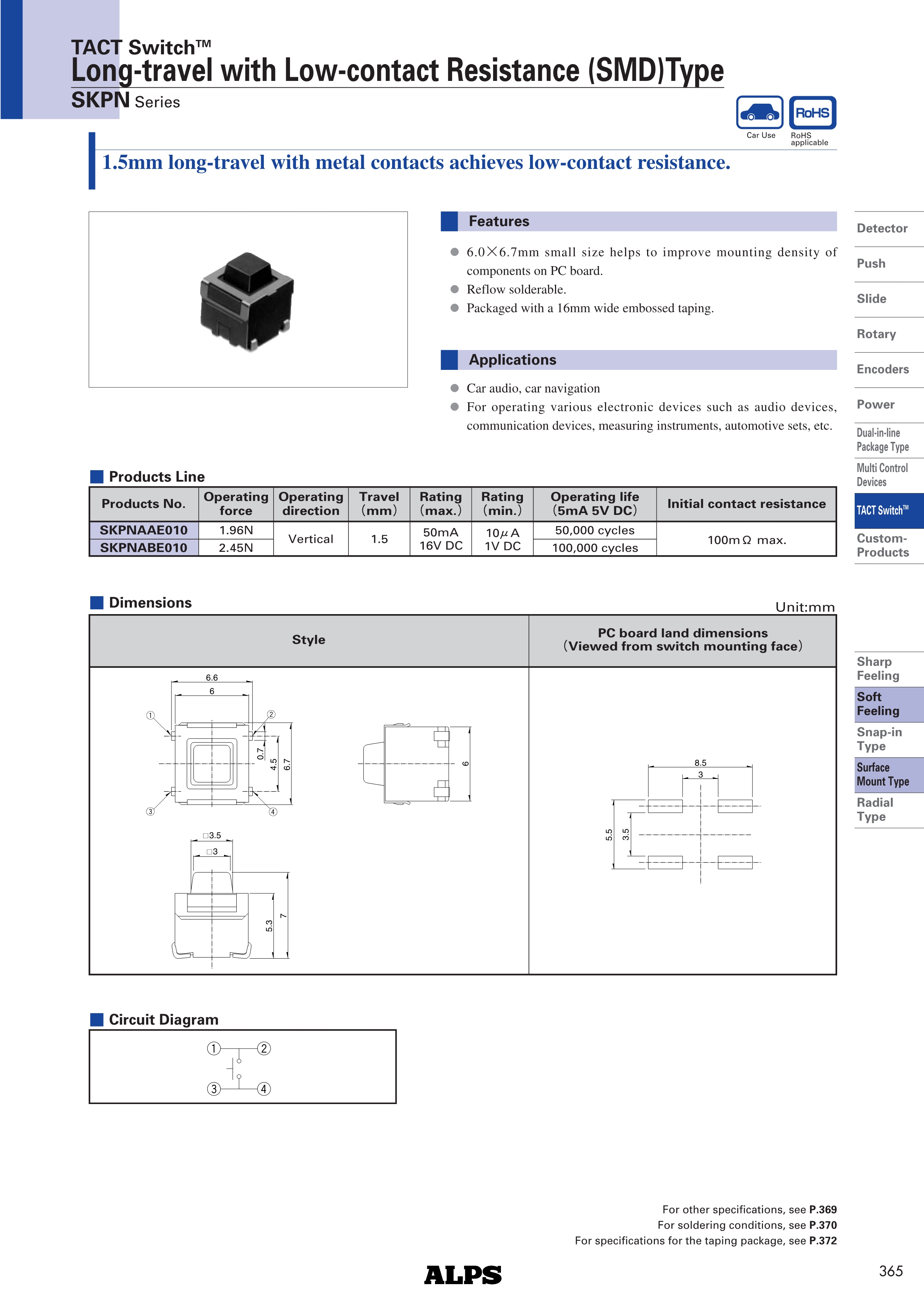 ALPS轻触开关SKPN系列