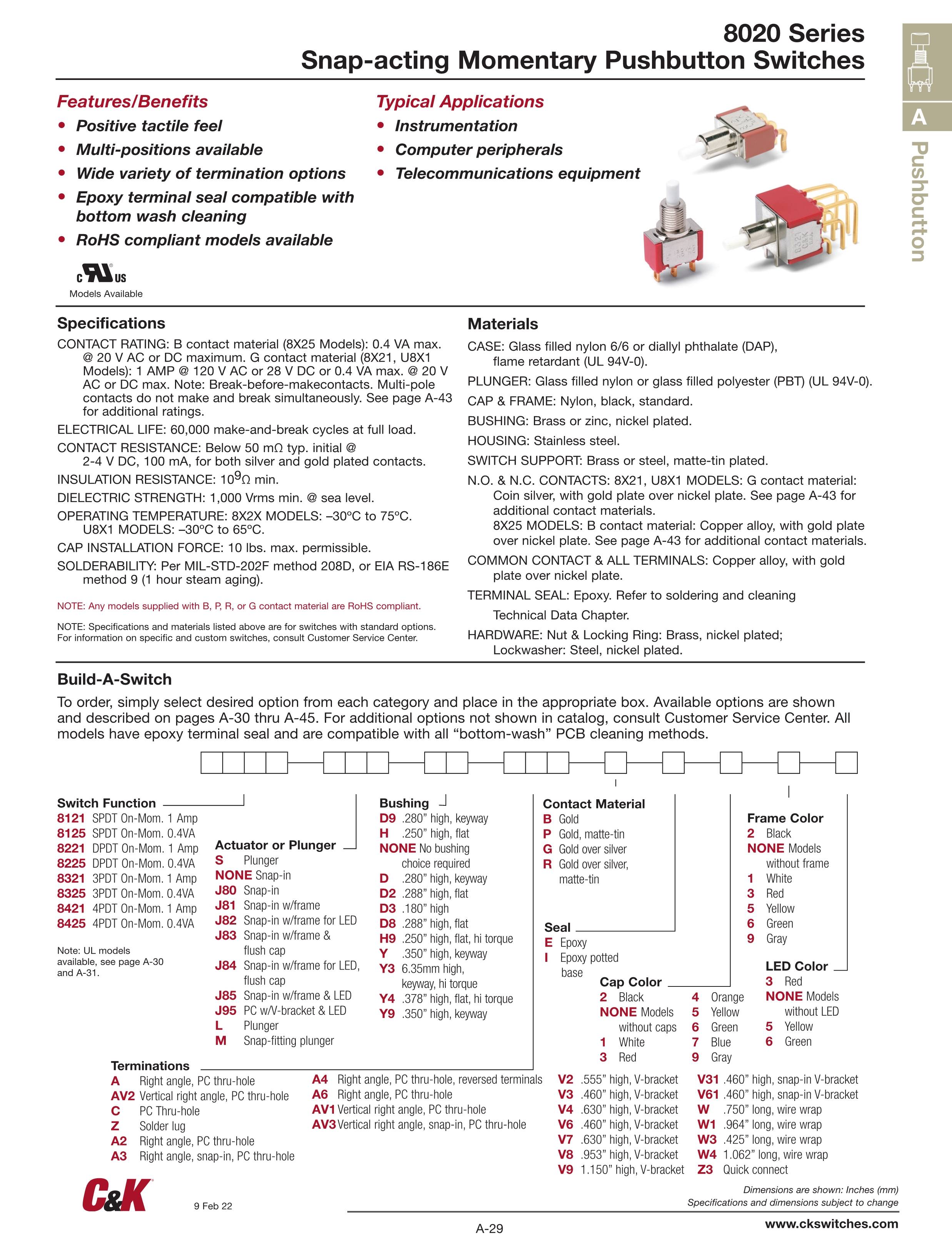 C&K按动开关8020系列