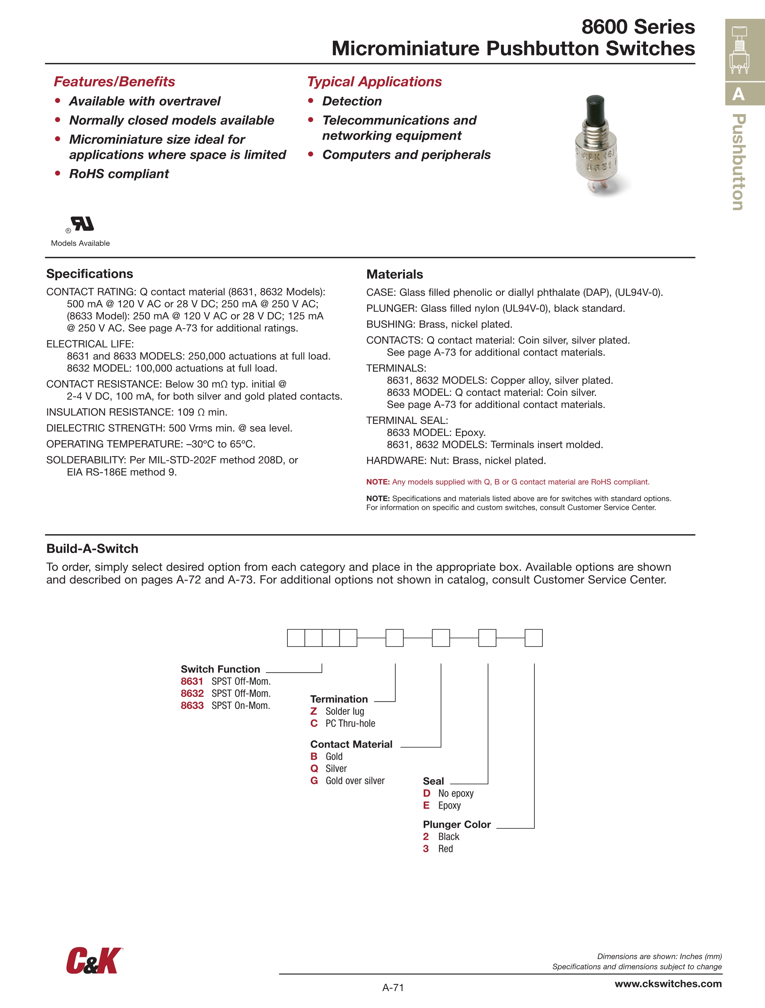 C&K按动开关8600系列