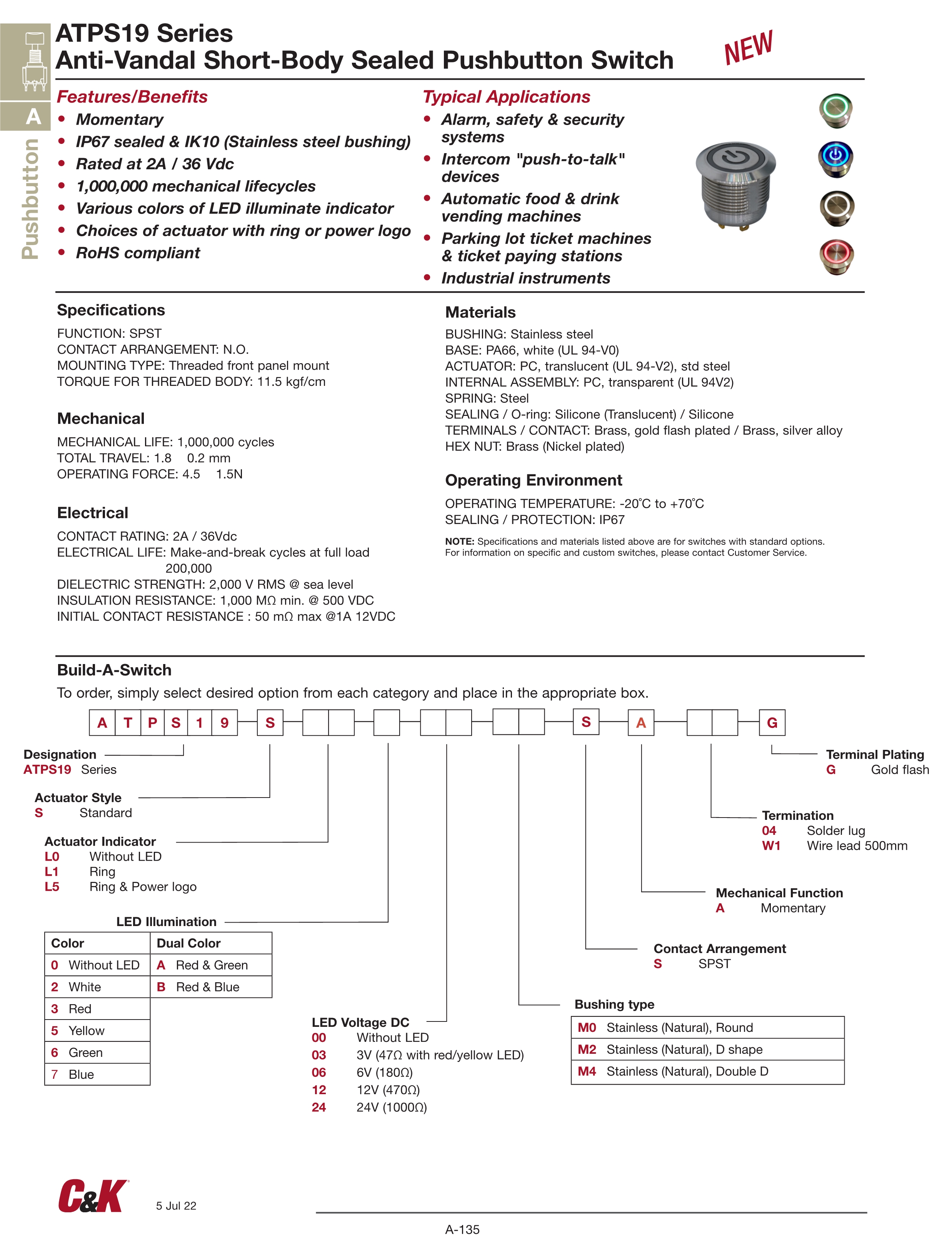 C&K按动开关ATPS19系列