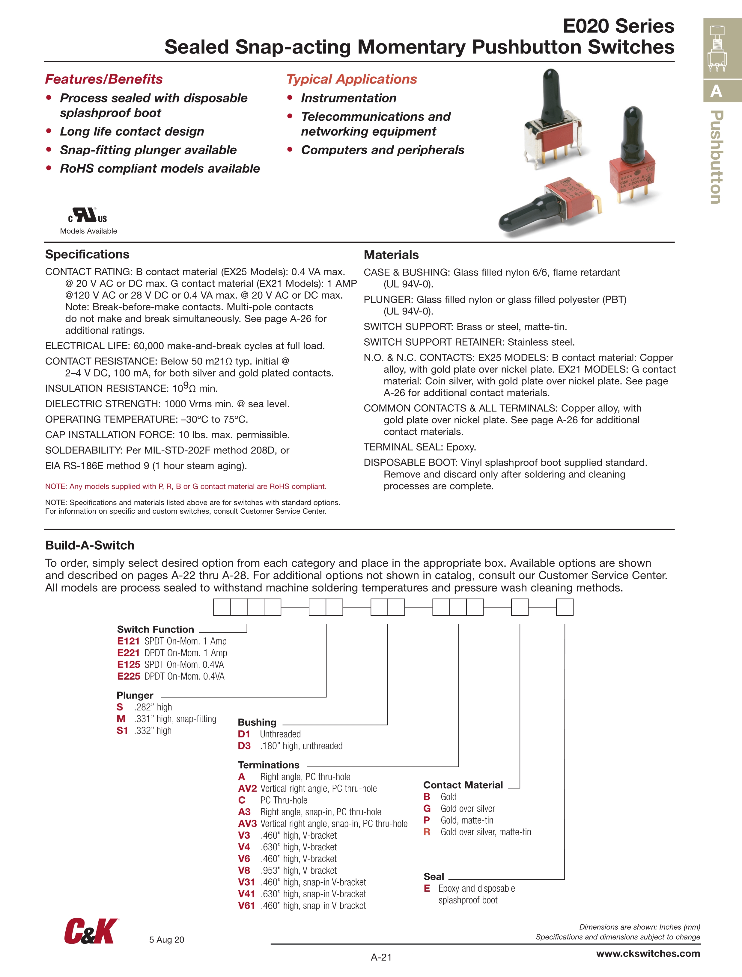C&K按动开关E020系列