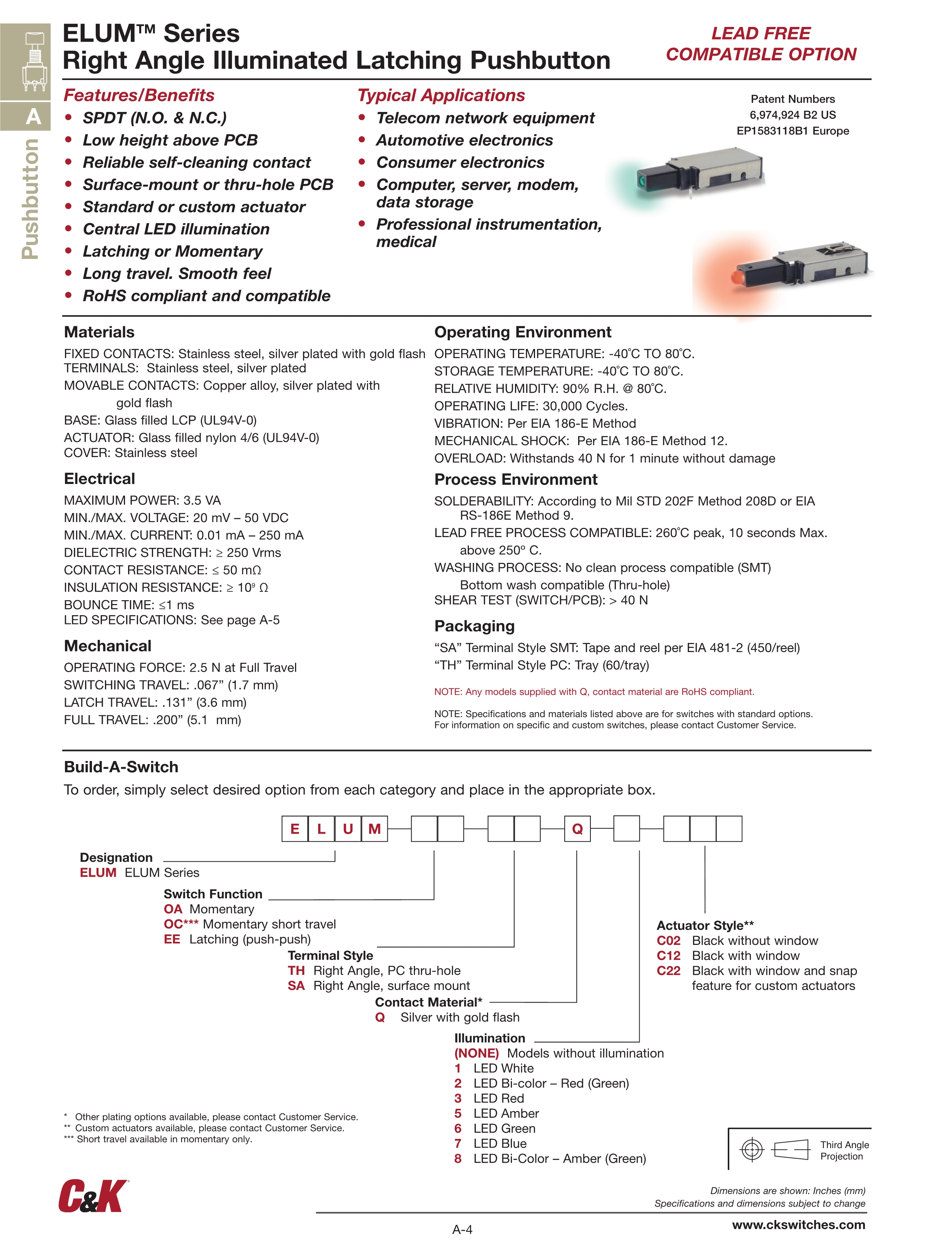 C&K按动开关ELUM系列