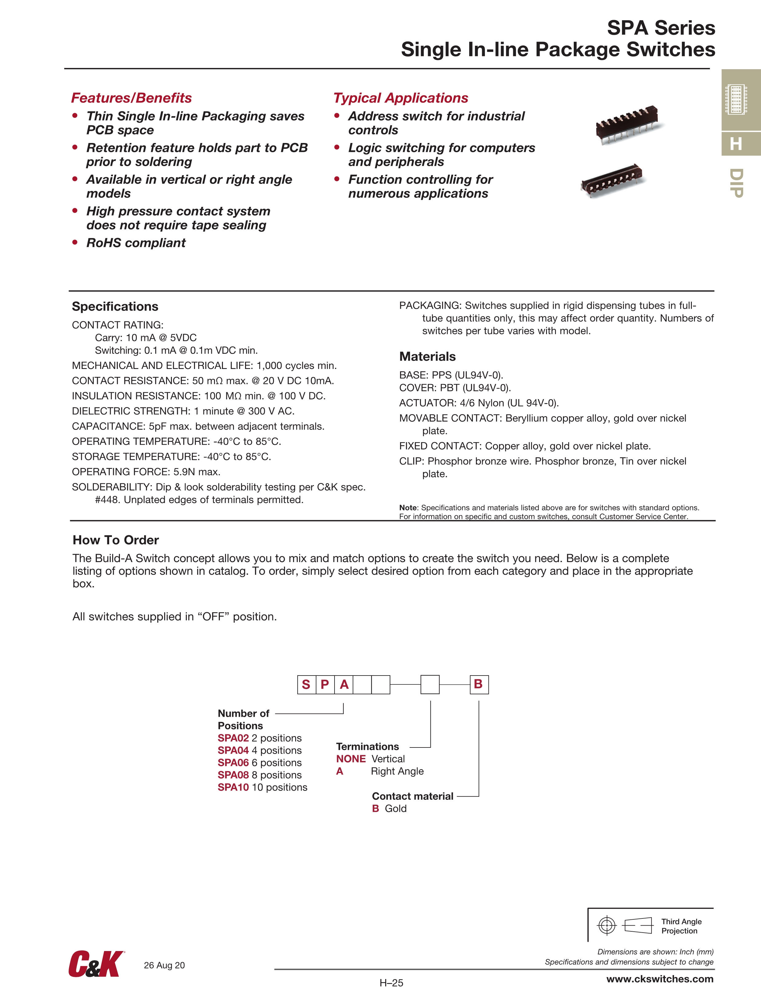 C&K拨码开关SPA系列