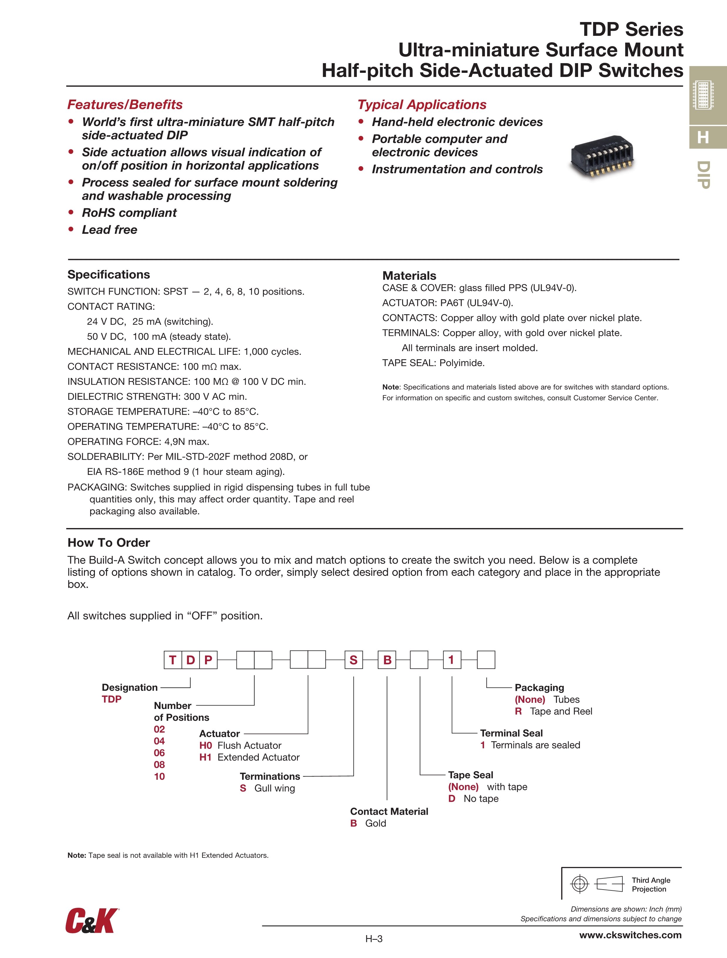 C&K拨码开关TDP系列
