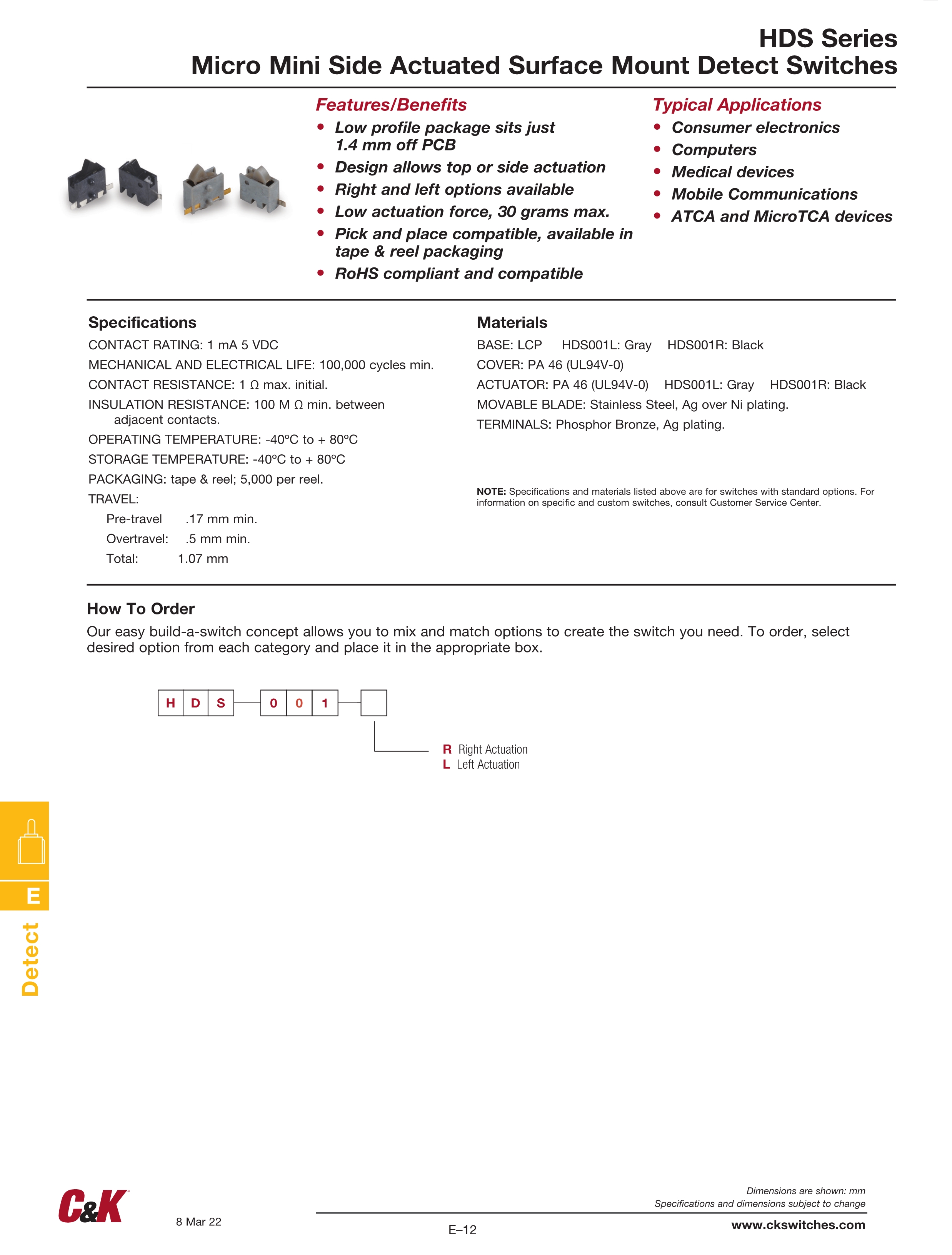C&K检测开关HDS系列