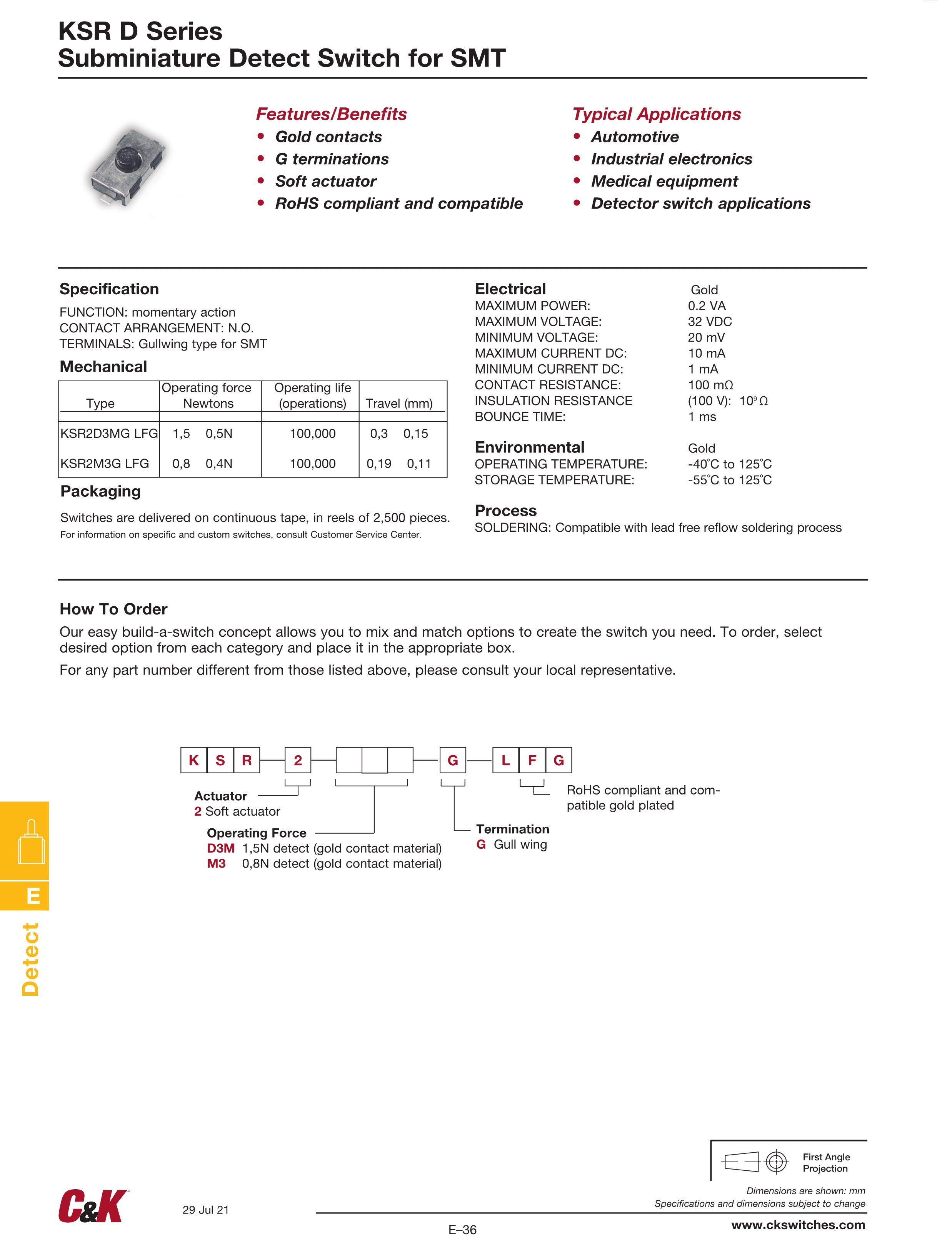 C&K检测开关KSR-D系列