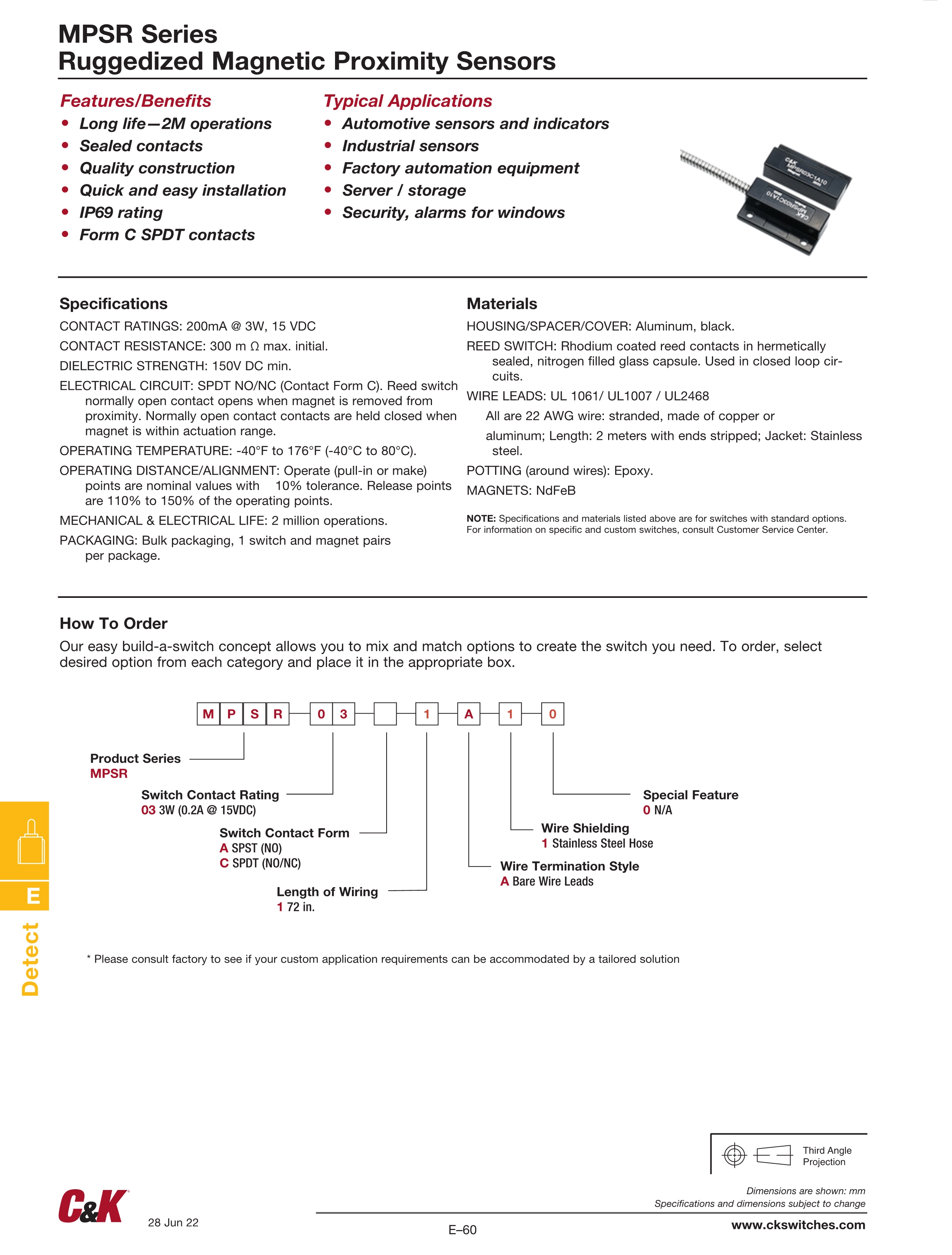 C&K检测开关MPSR系列