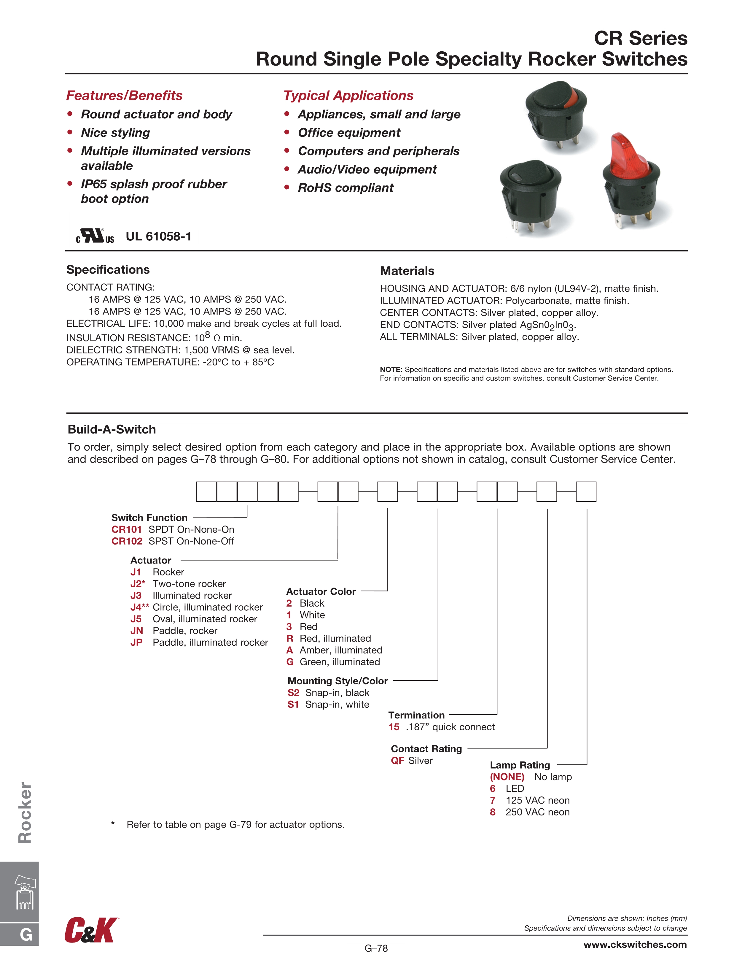 C&K翘板开关CR系列
