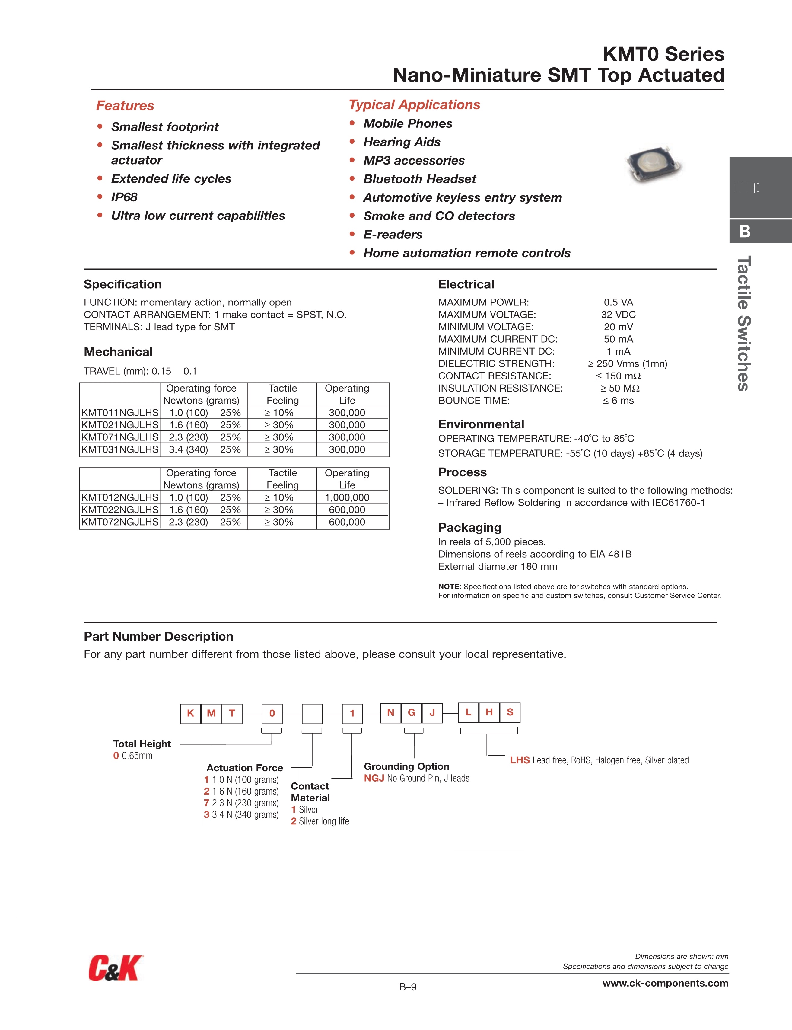 C&K轻触开关KMT0系列