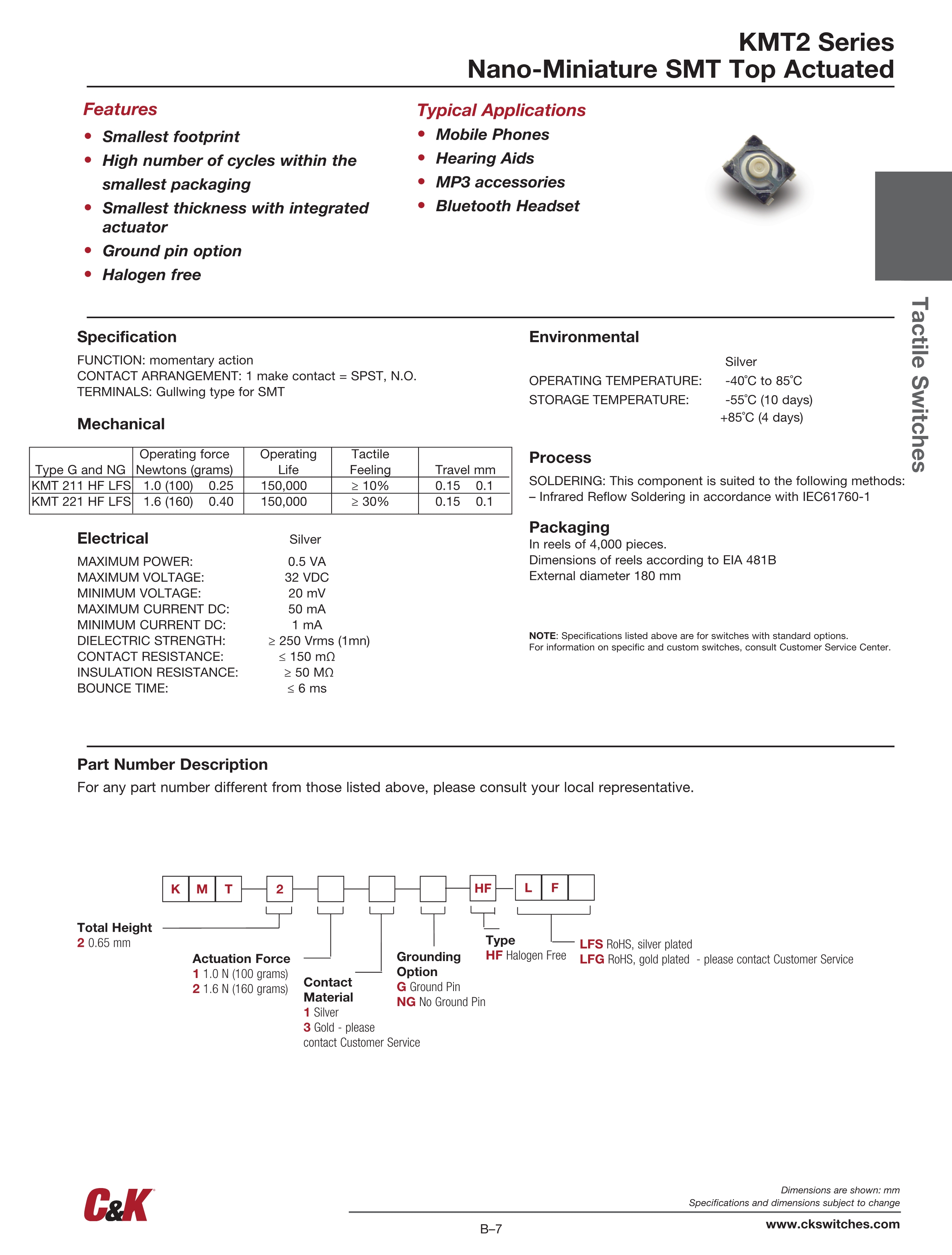 C&K轻触开关KMT2系列