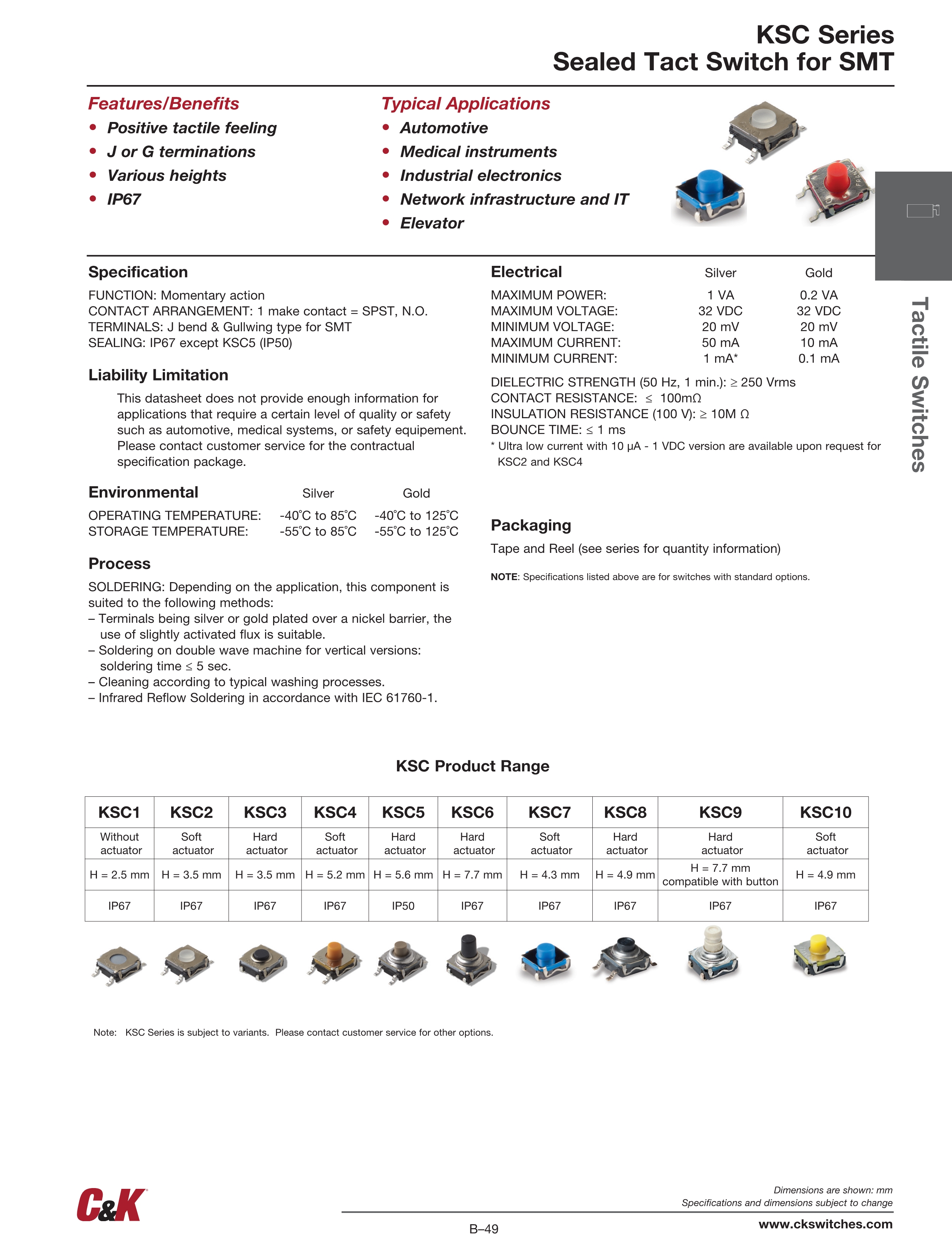 C&K轻触开关KSC系列