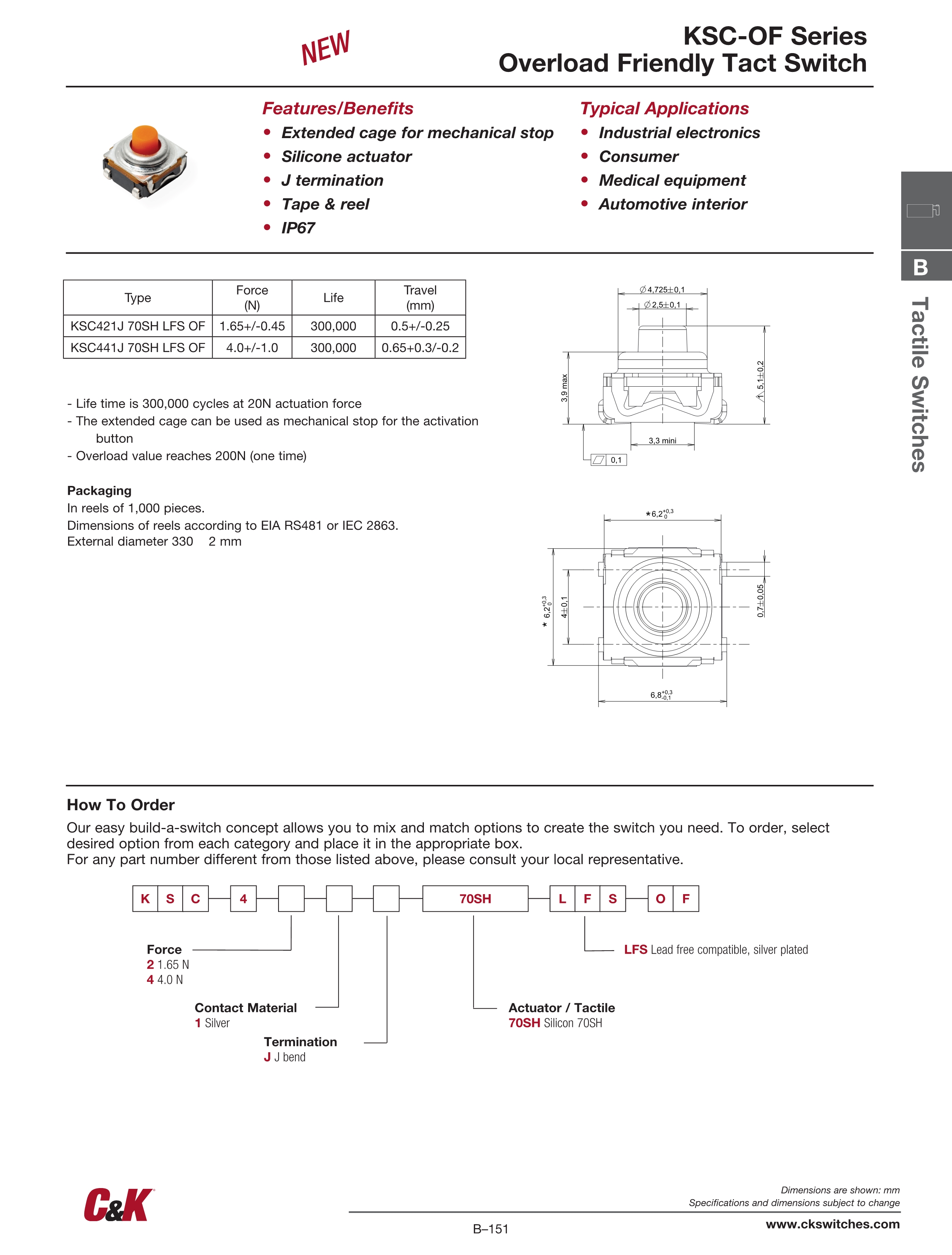 C&K轻触开关KSC-OF系列