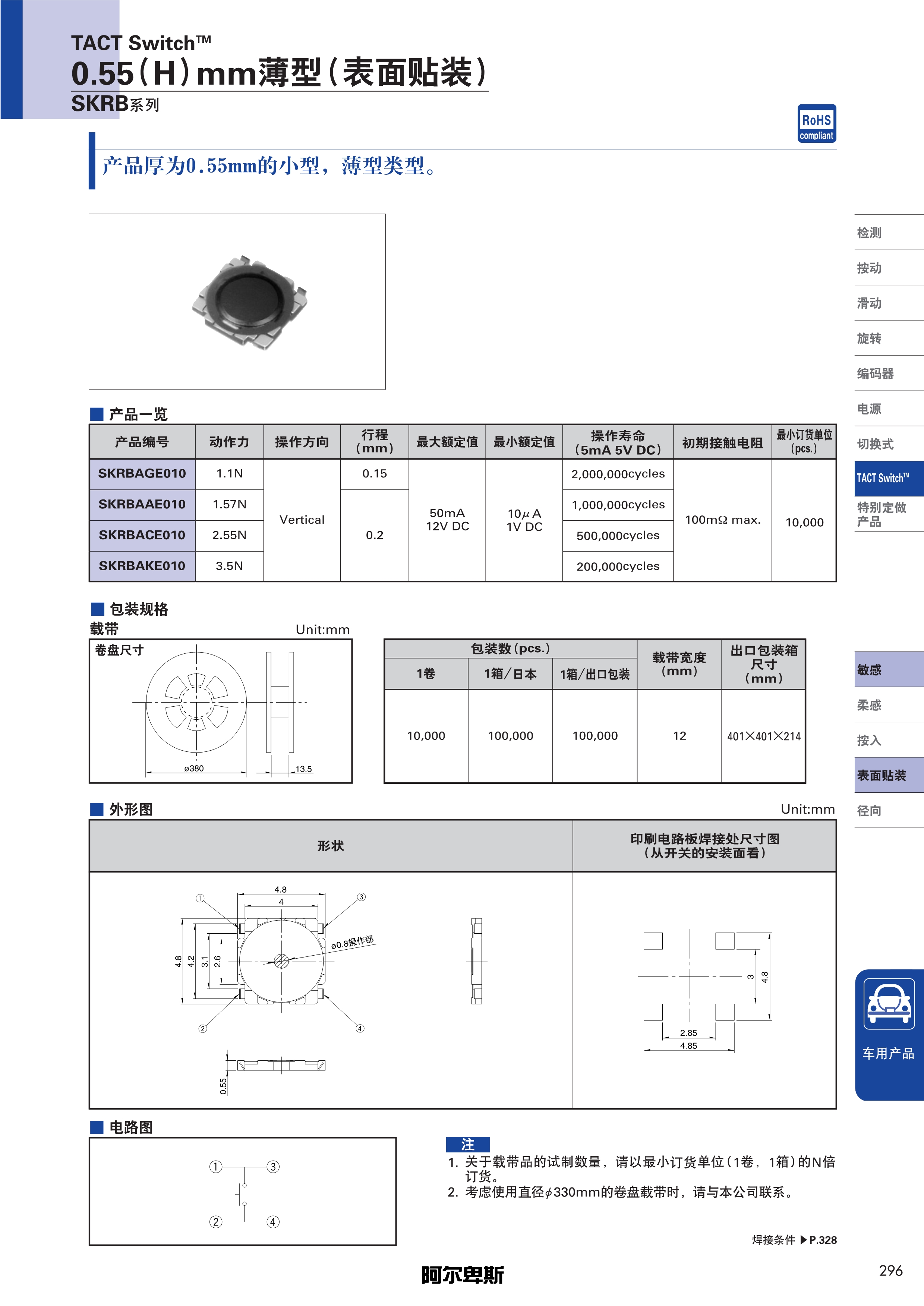 ALPS轻触开关SKRB系列