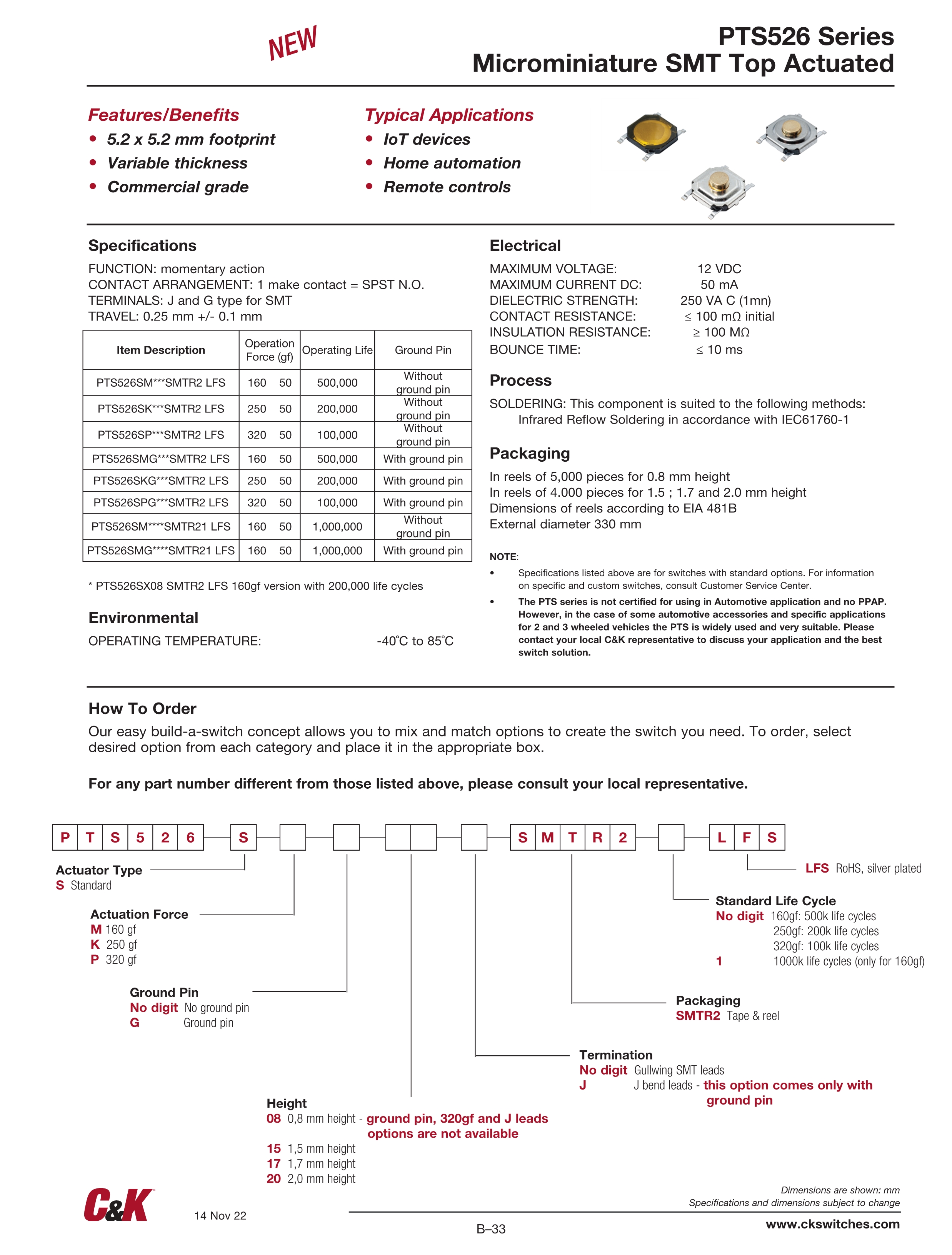 C&K轻触开关PTS526系列