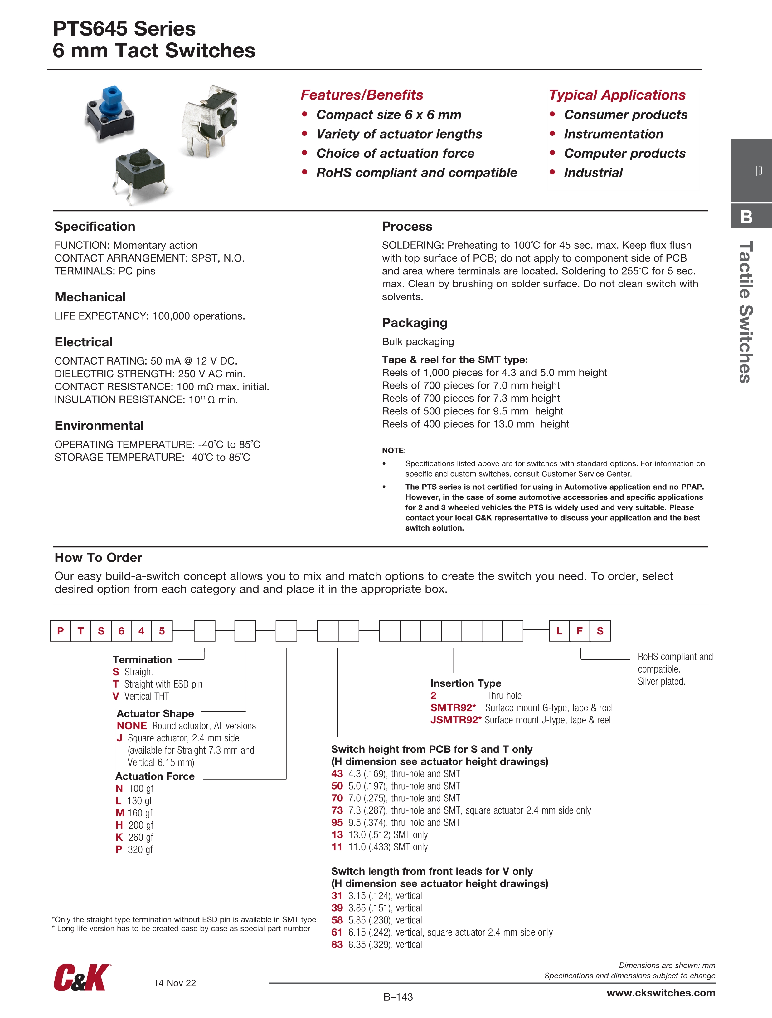 C&K轻触开关PTS645系列