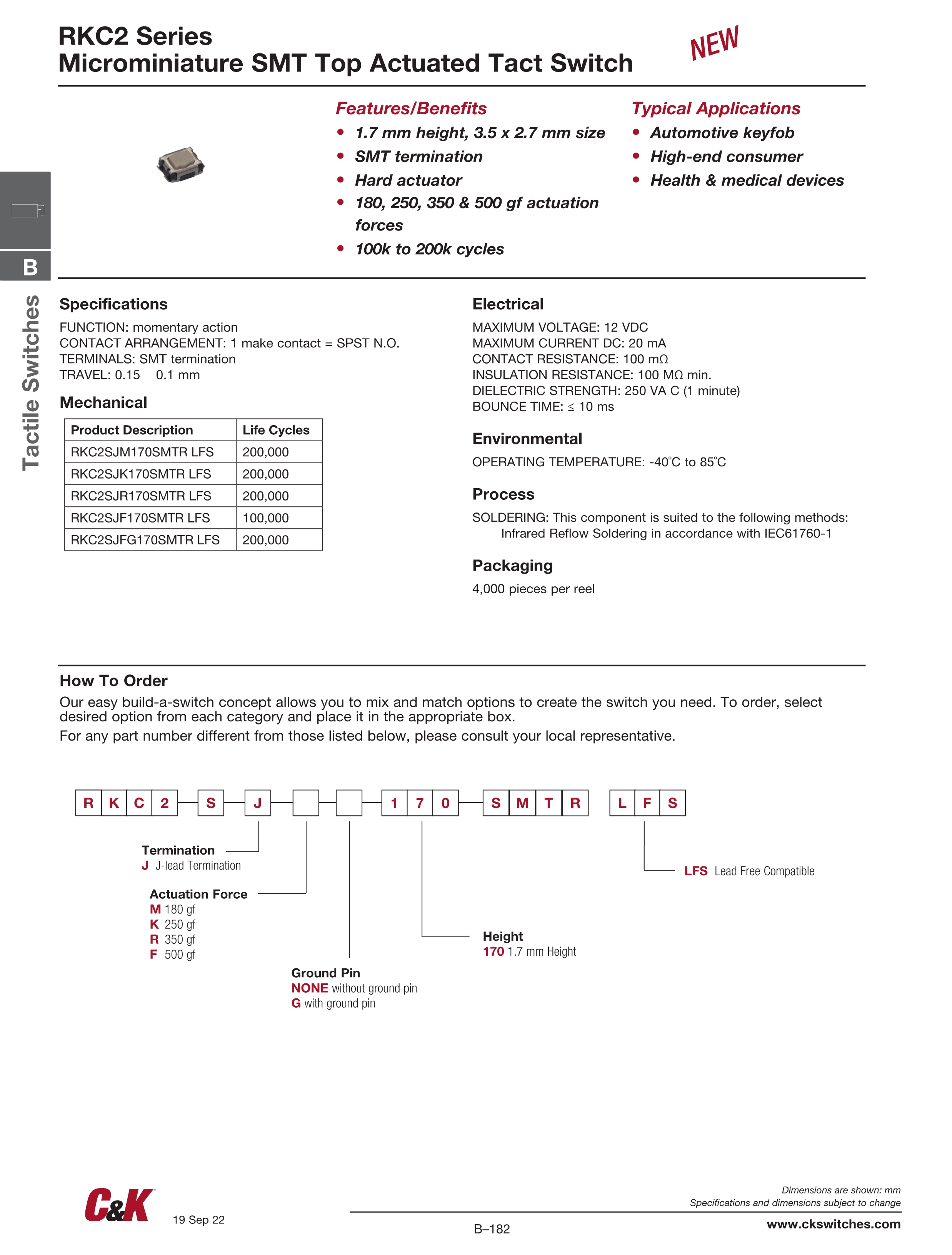 C&K轻触开关RKC2系列
