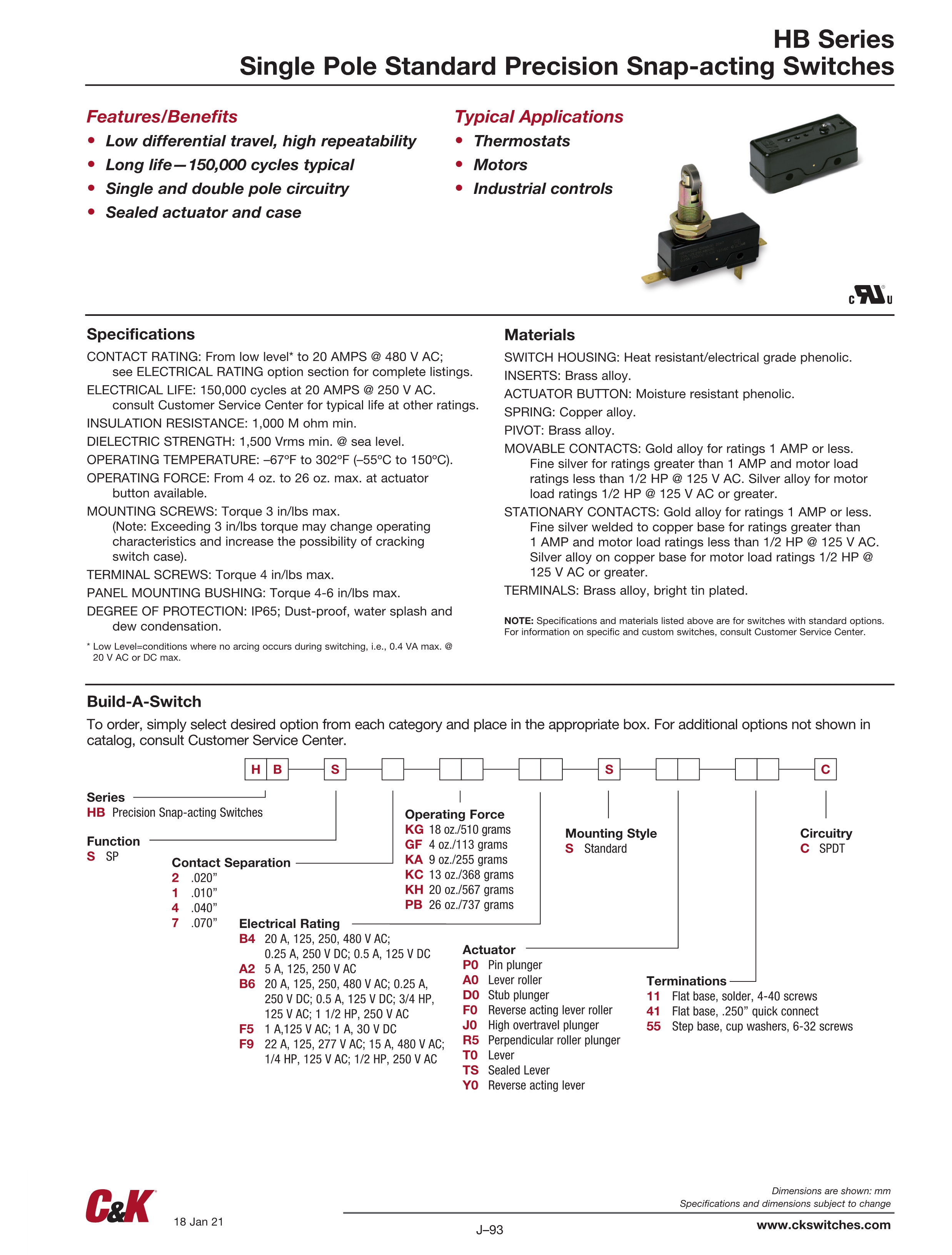 C&K微动开关hb系列