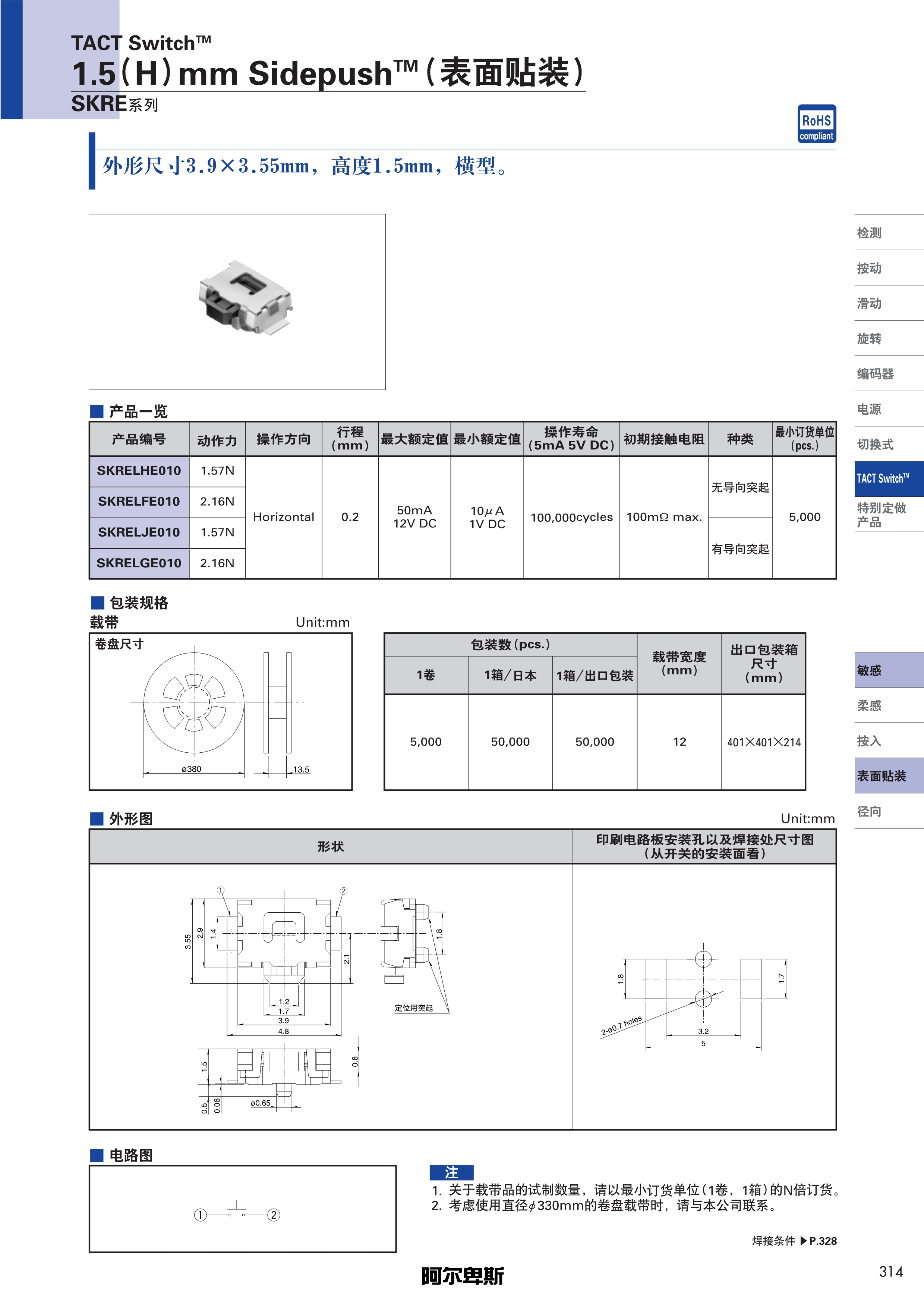 ALPS轻触开关SKRE系列