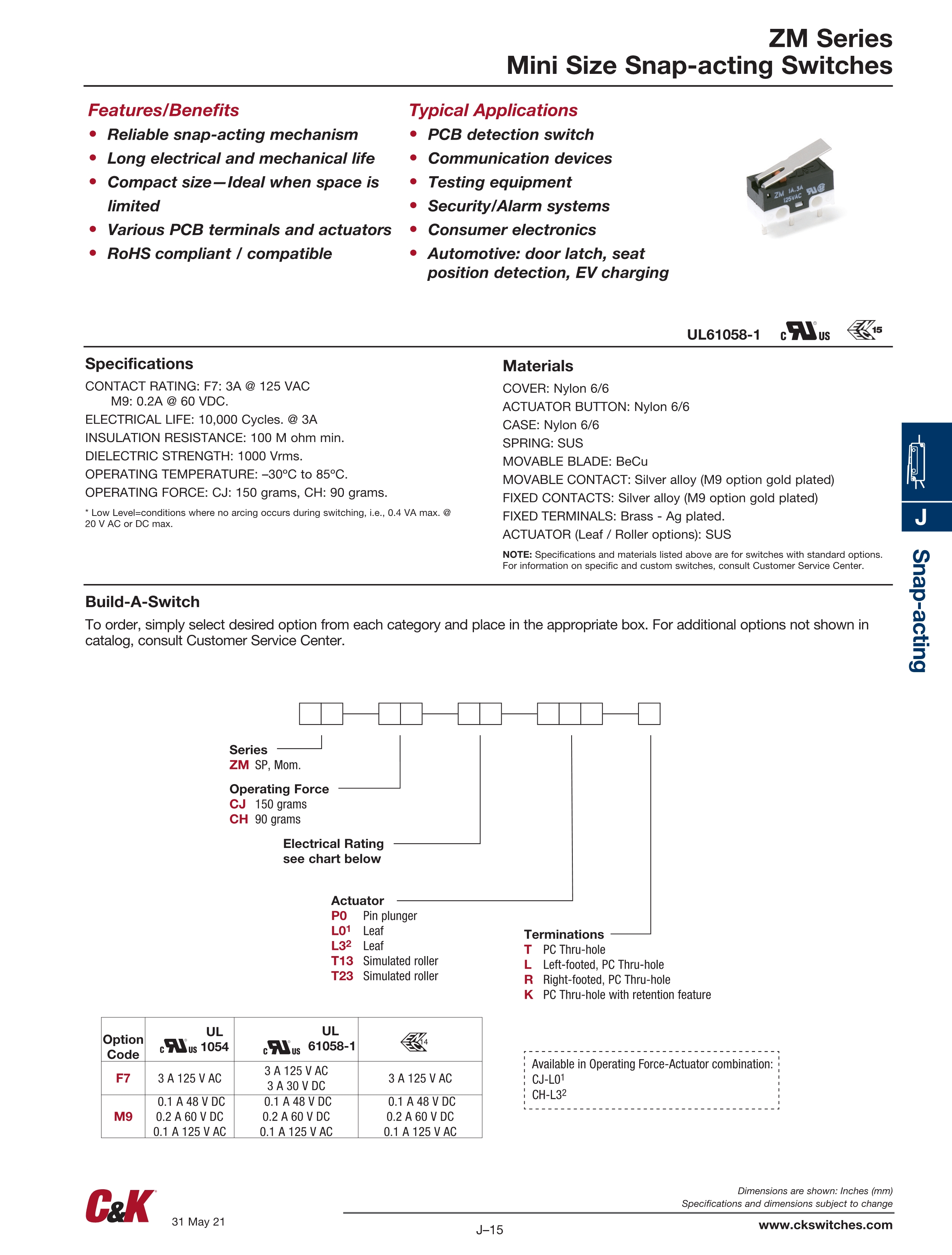 C&K微动开关zm系列