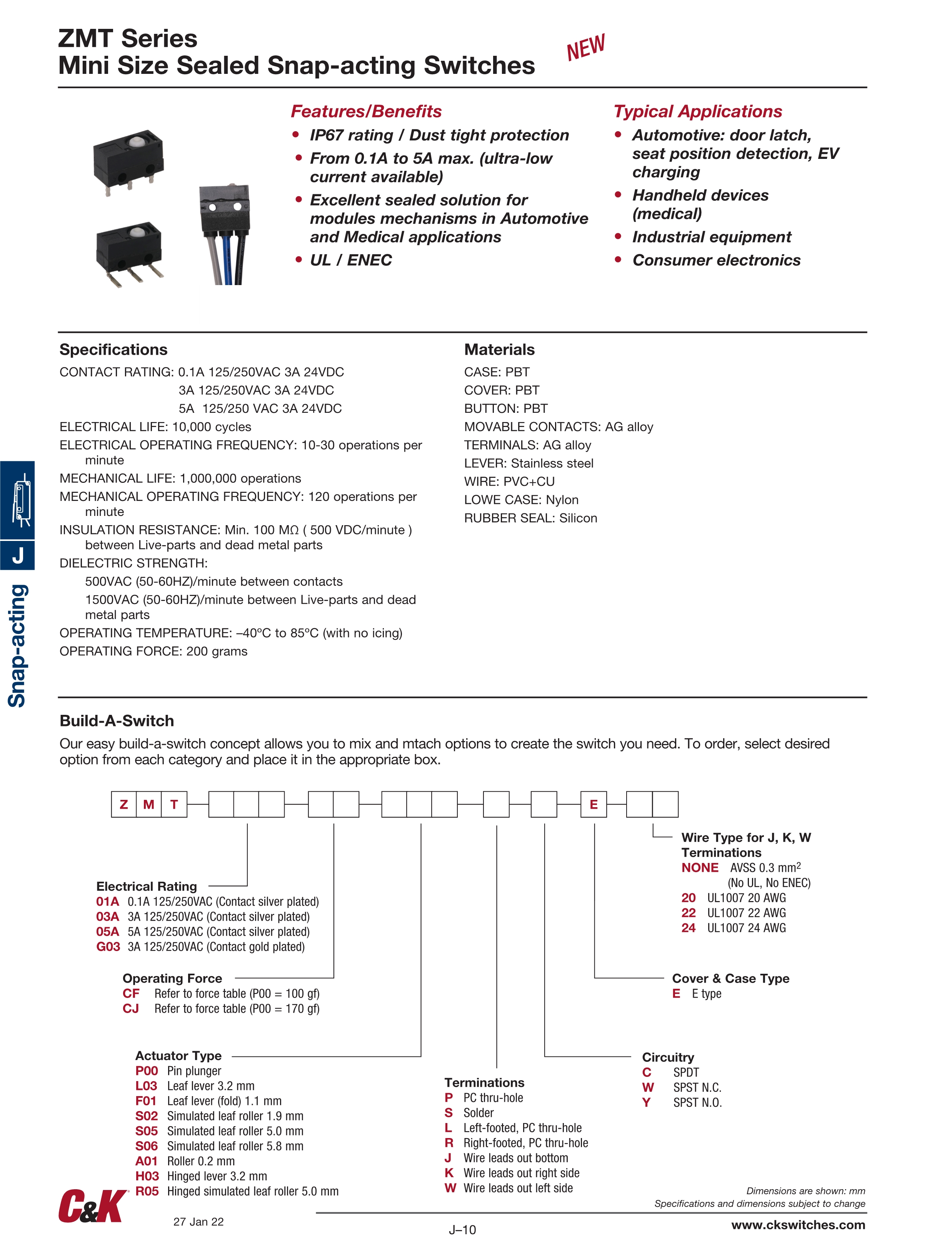 C&K微动开关zmt系列