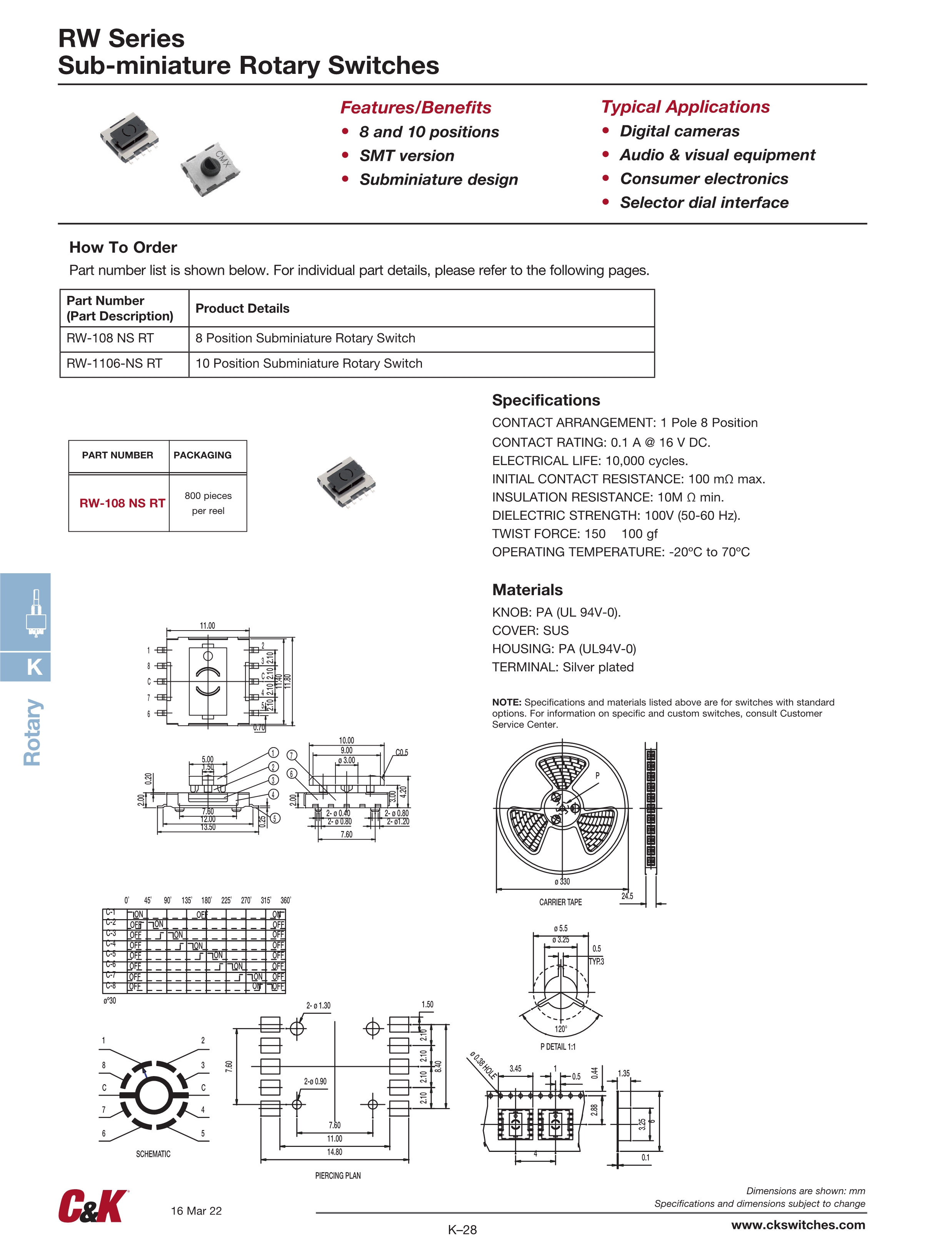 C&K旋转开关RW系列