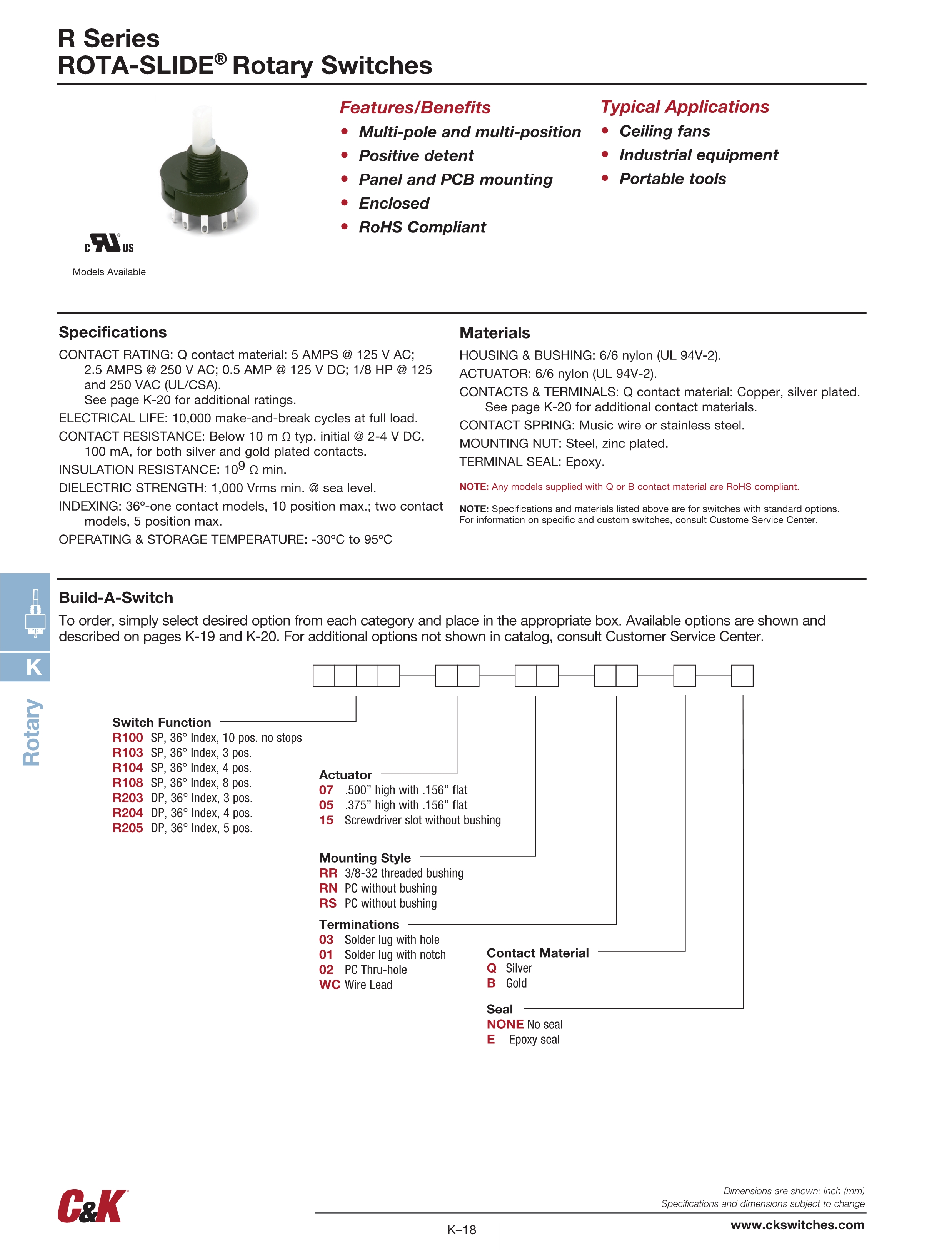 C&K旋转开关R系列