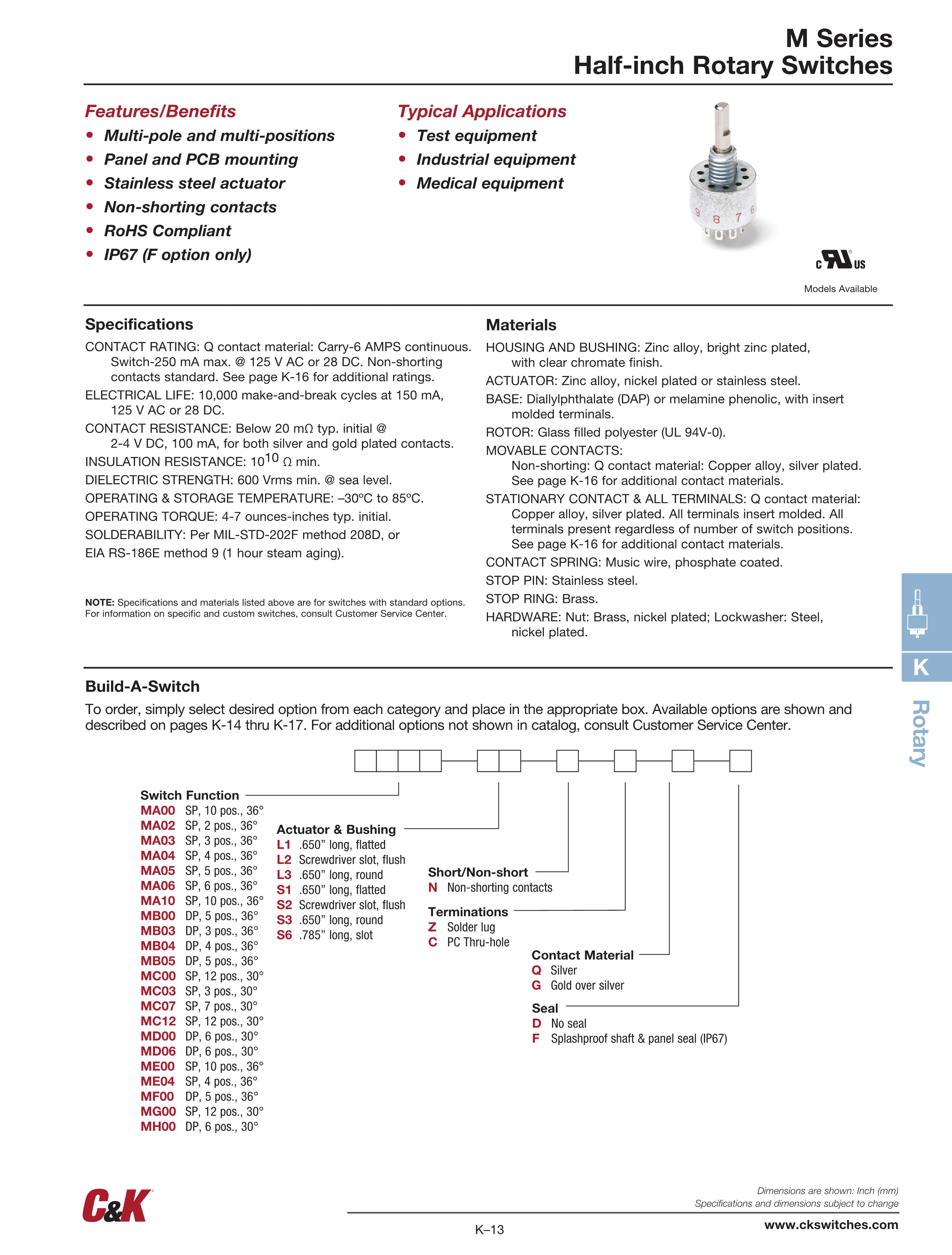 C&K旋转开关M系列