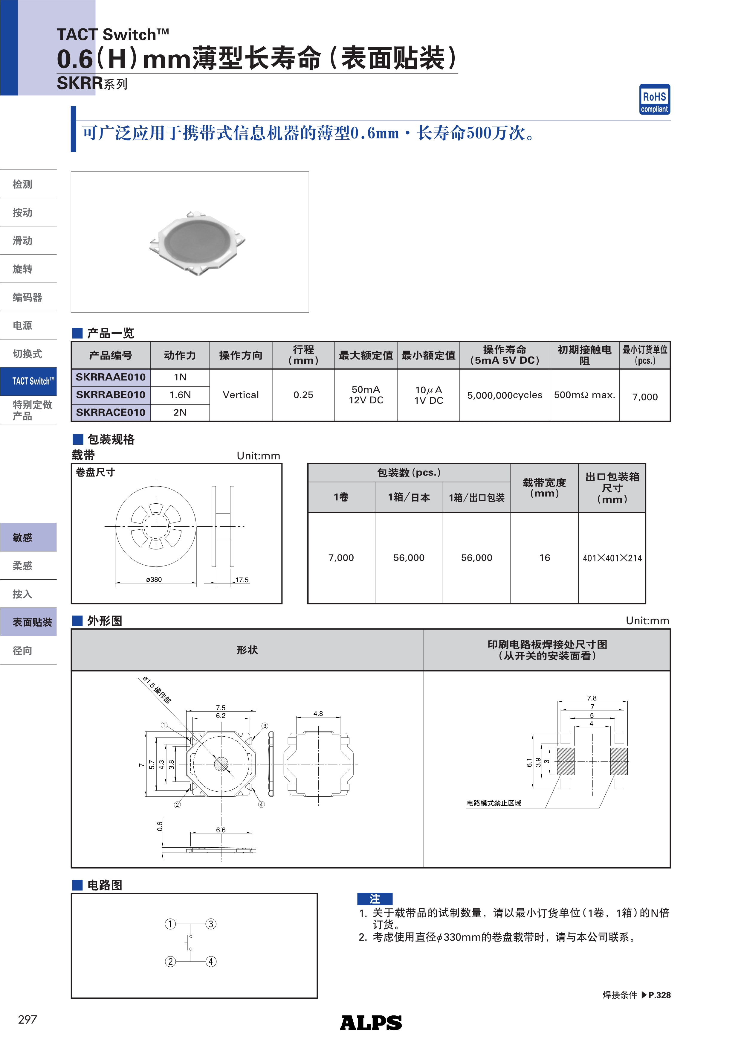 ALPS轻触开关SKRR系列