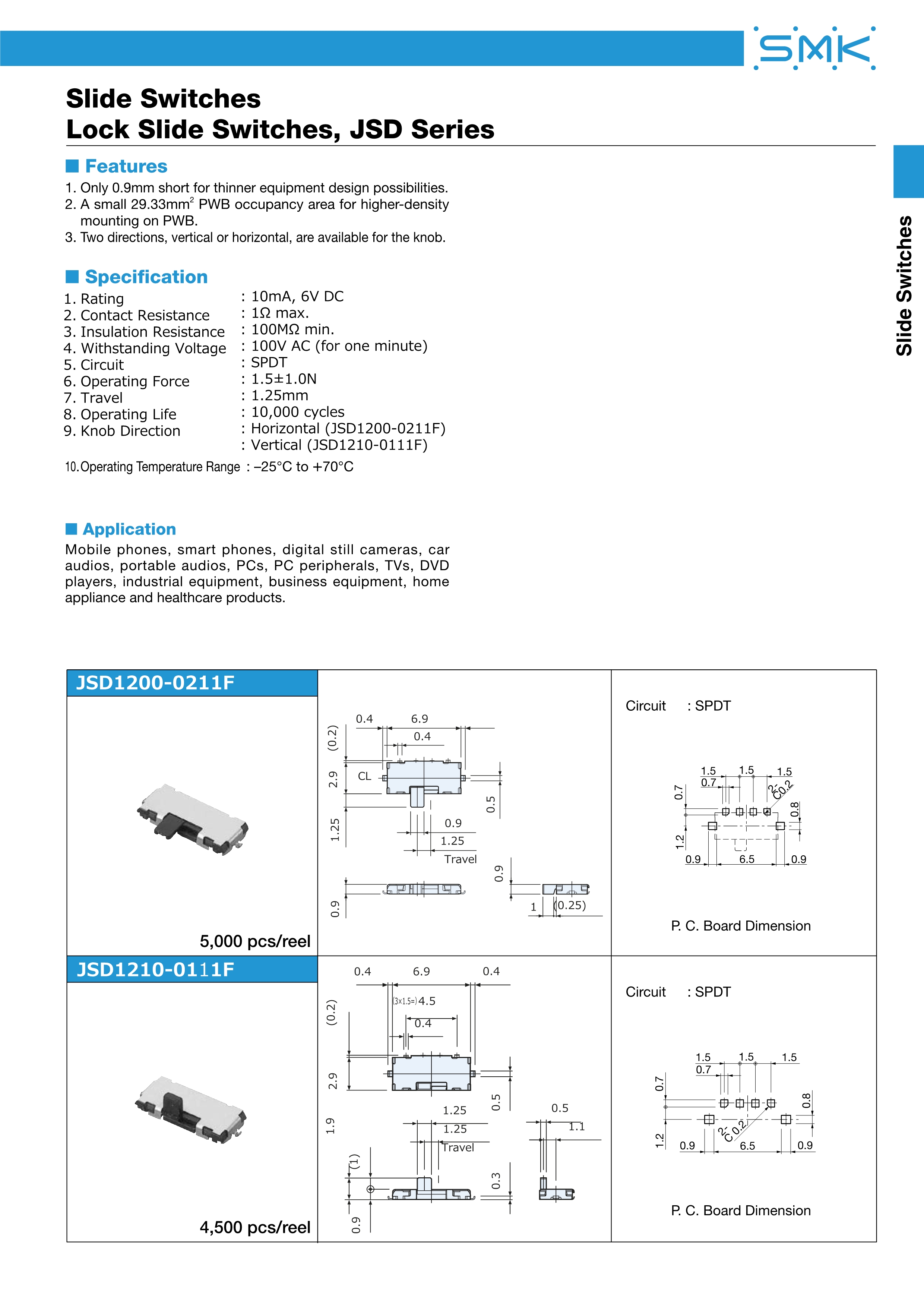 SMK滑动开关JSD系列