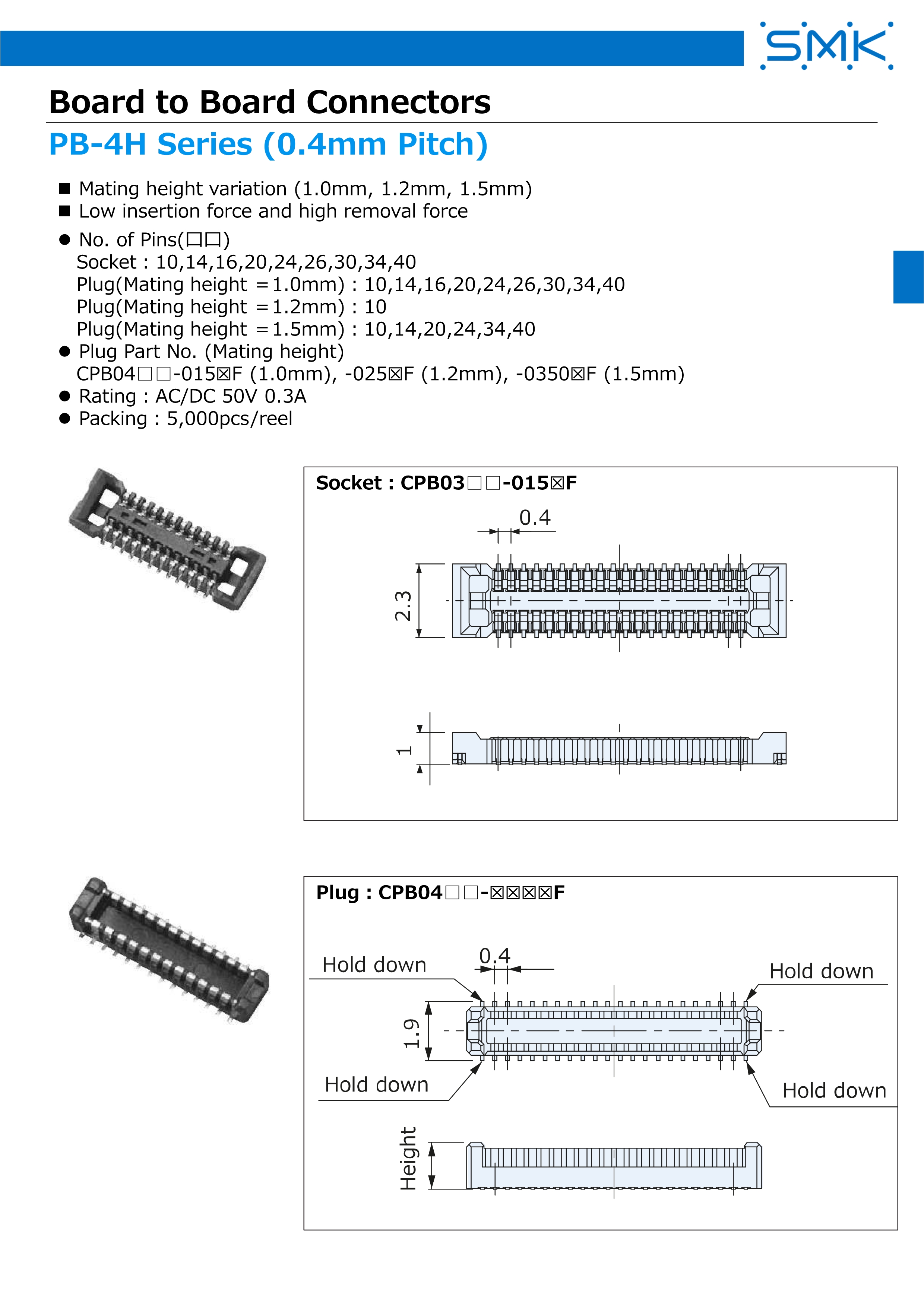 SMK板(FPC)对板连接器PB-4H系列