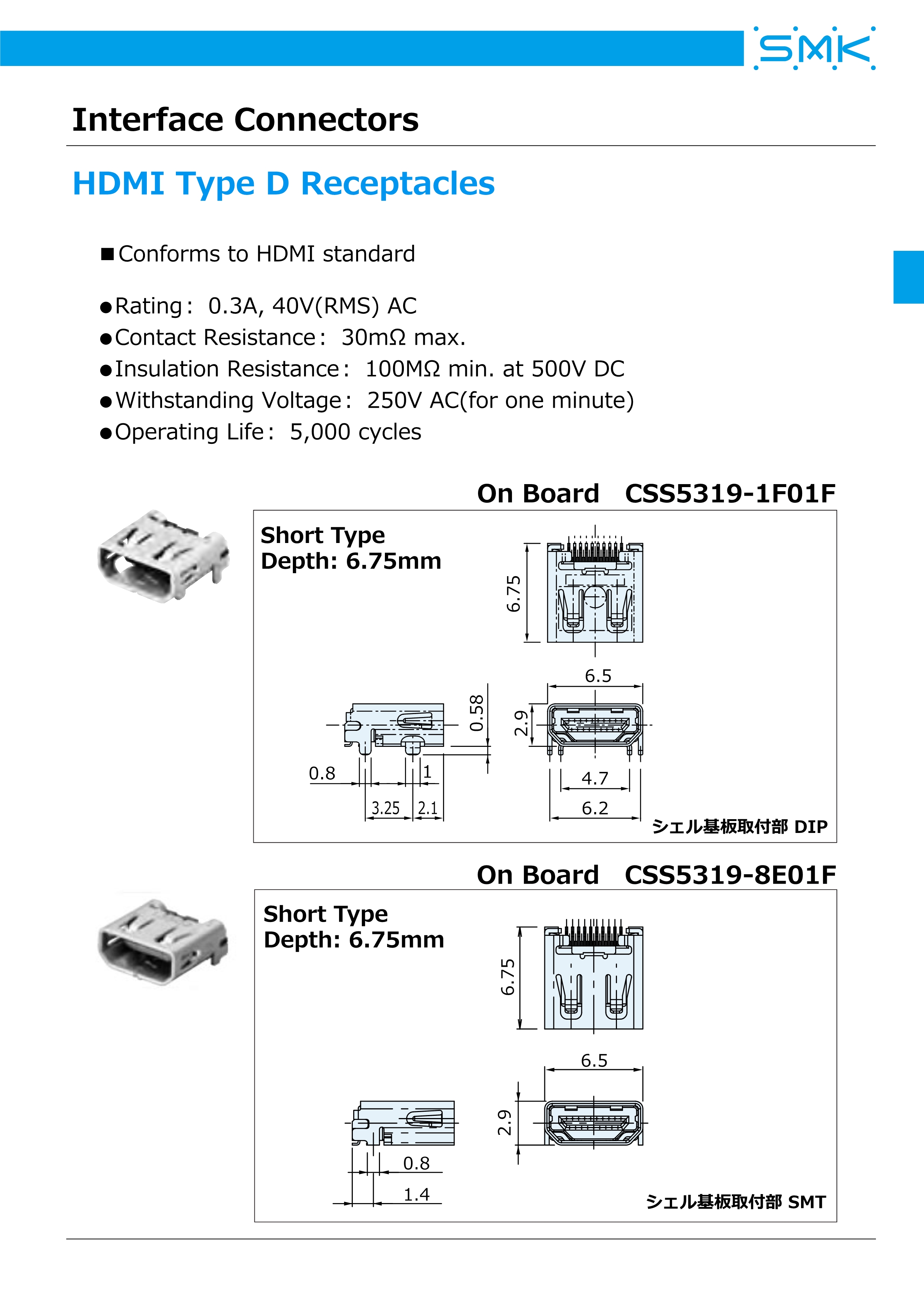 SMK外部接口连接器HDMI-D(Short)系列