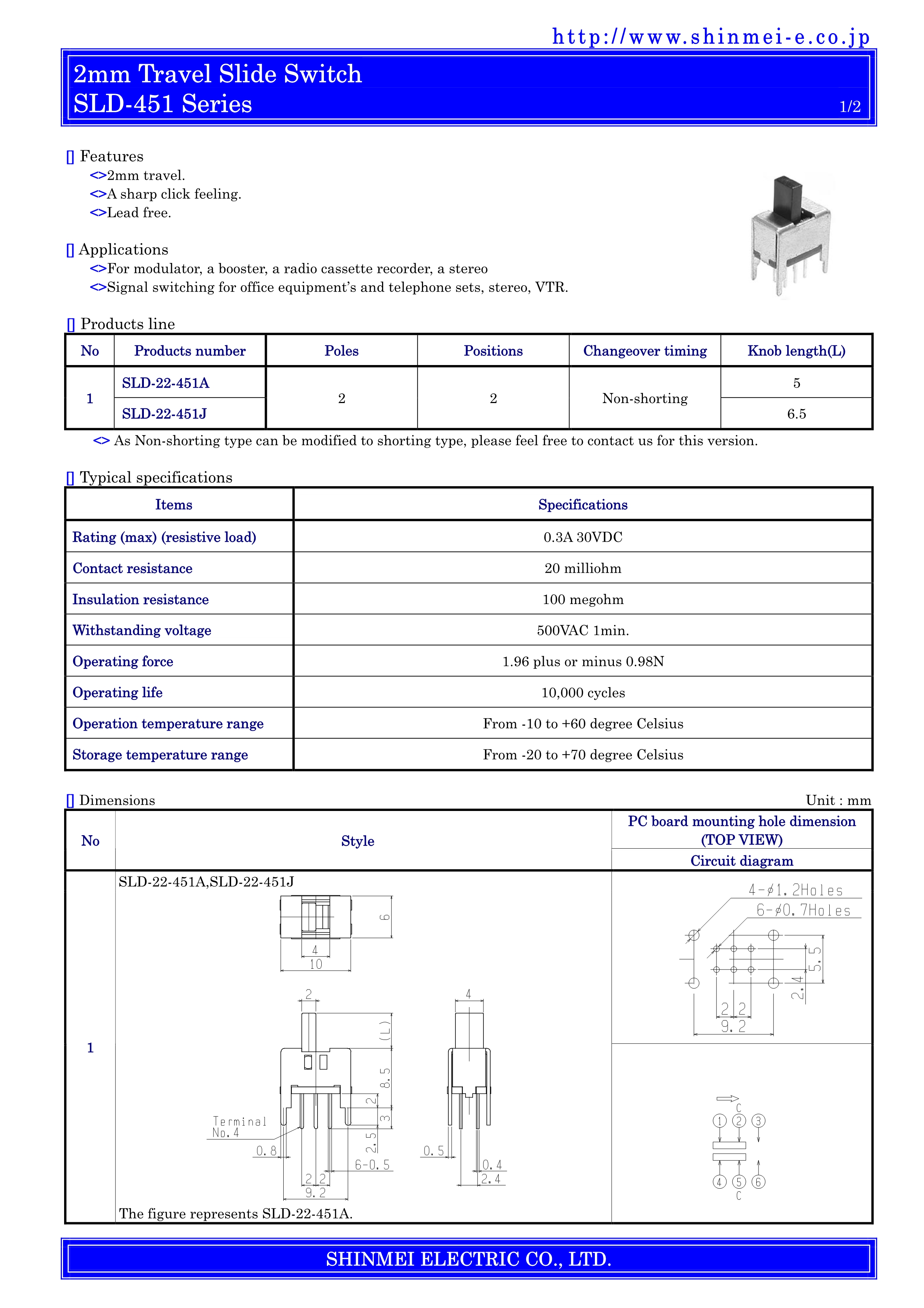 SHINMEI滑动开关SLD-451系列