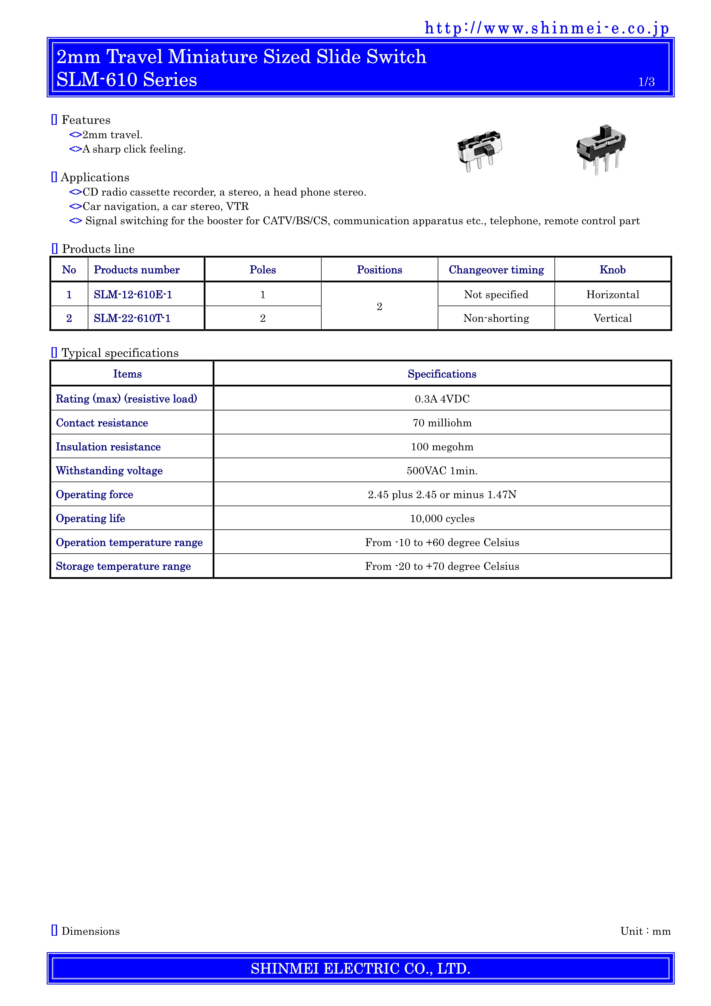 SHINMEI滑动开关SLM-610系列
