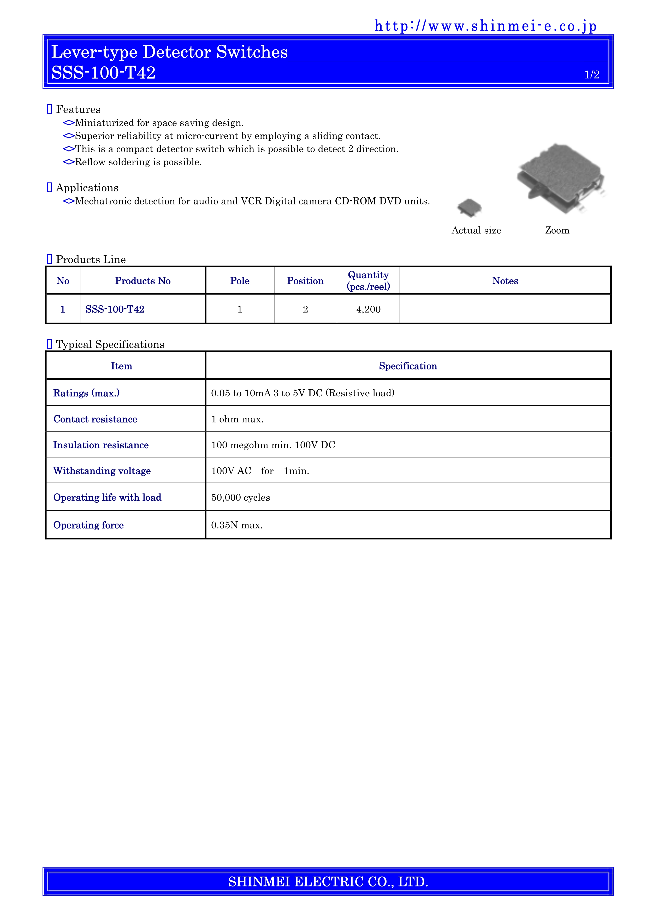 SHINMEI检测开关SSS-100-T42系列