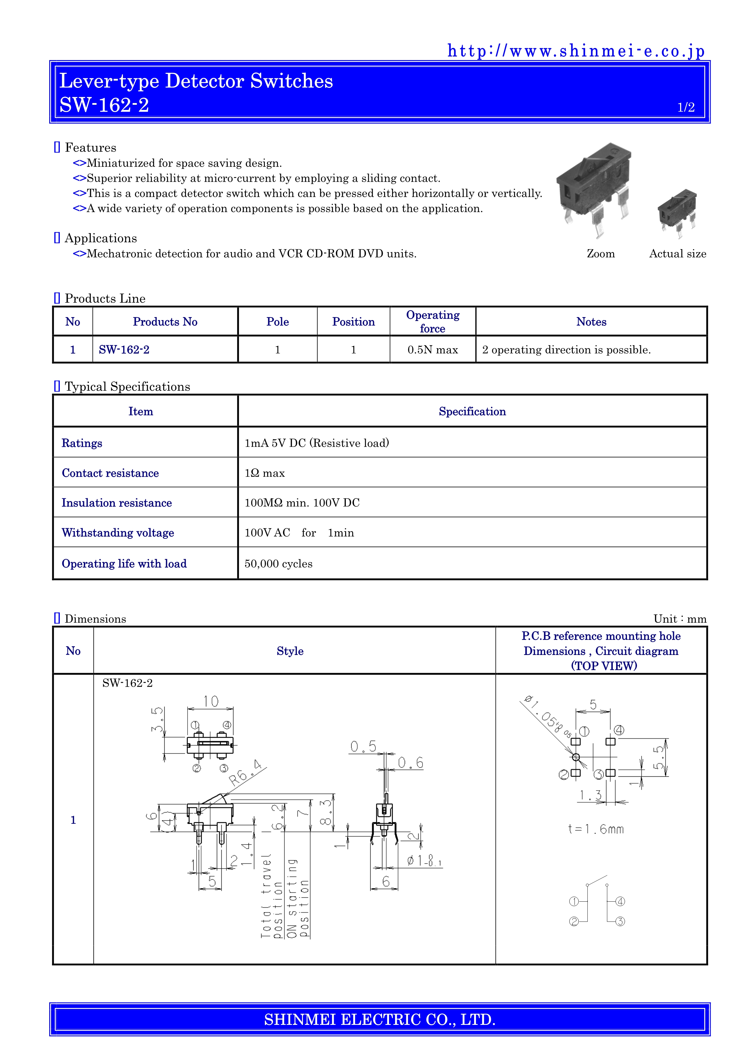 SHINMEI检测开关SW-162-2系列