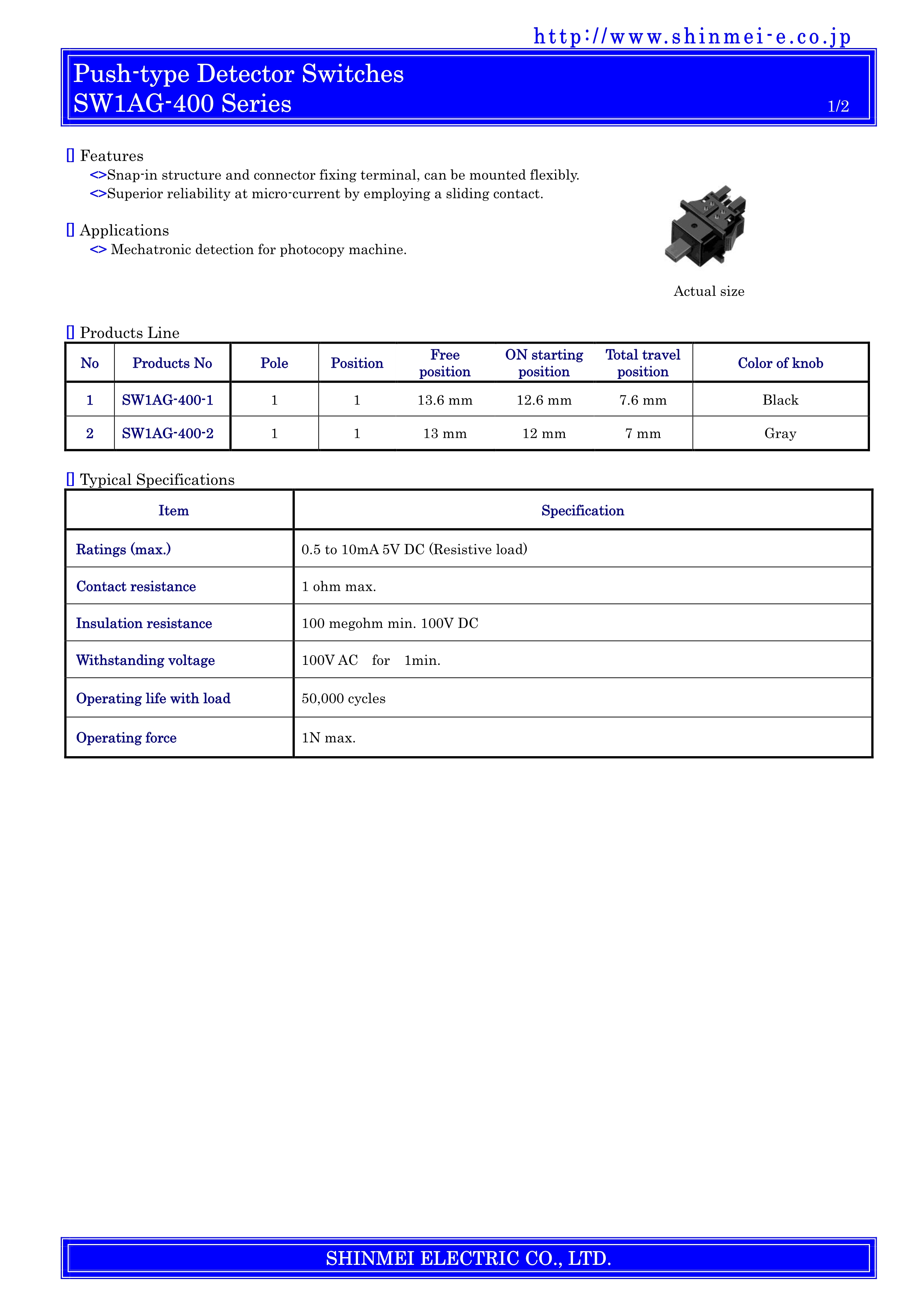 SHINMEI检测开关SW1AG-400系列