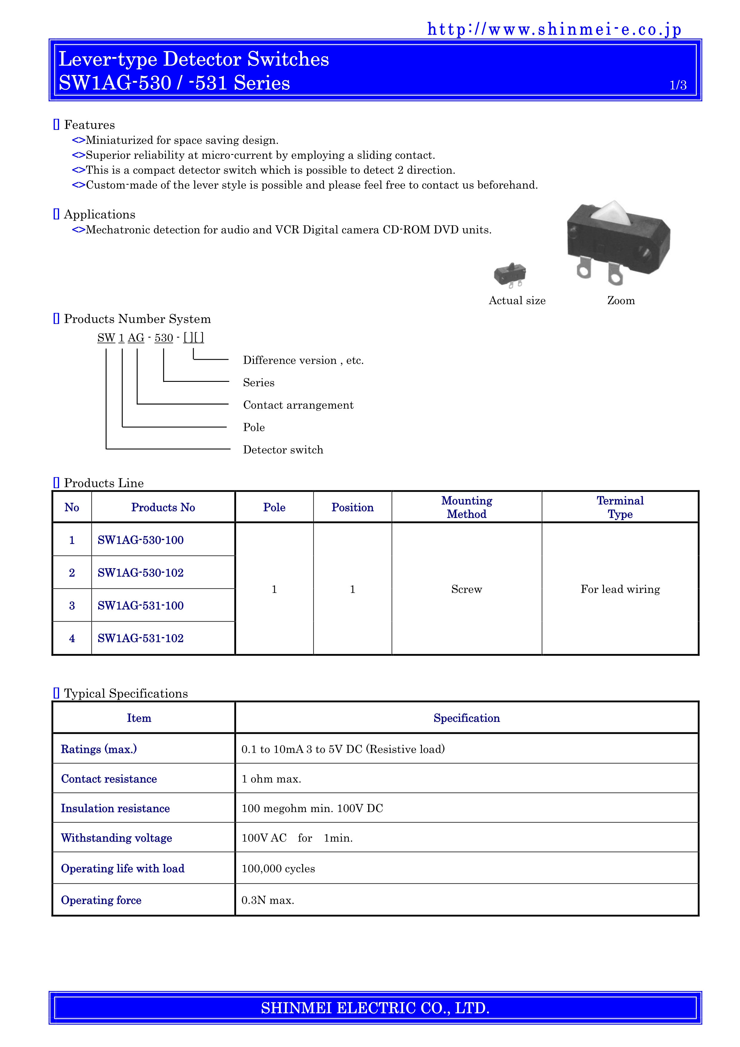 SHINMEI检测开关SW1AG-530系列