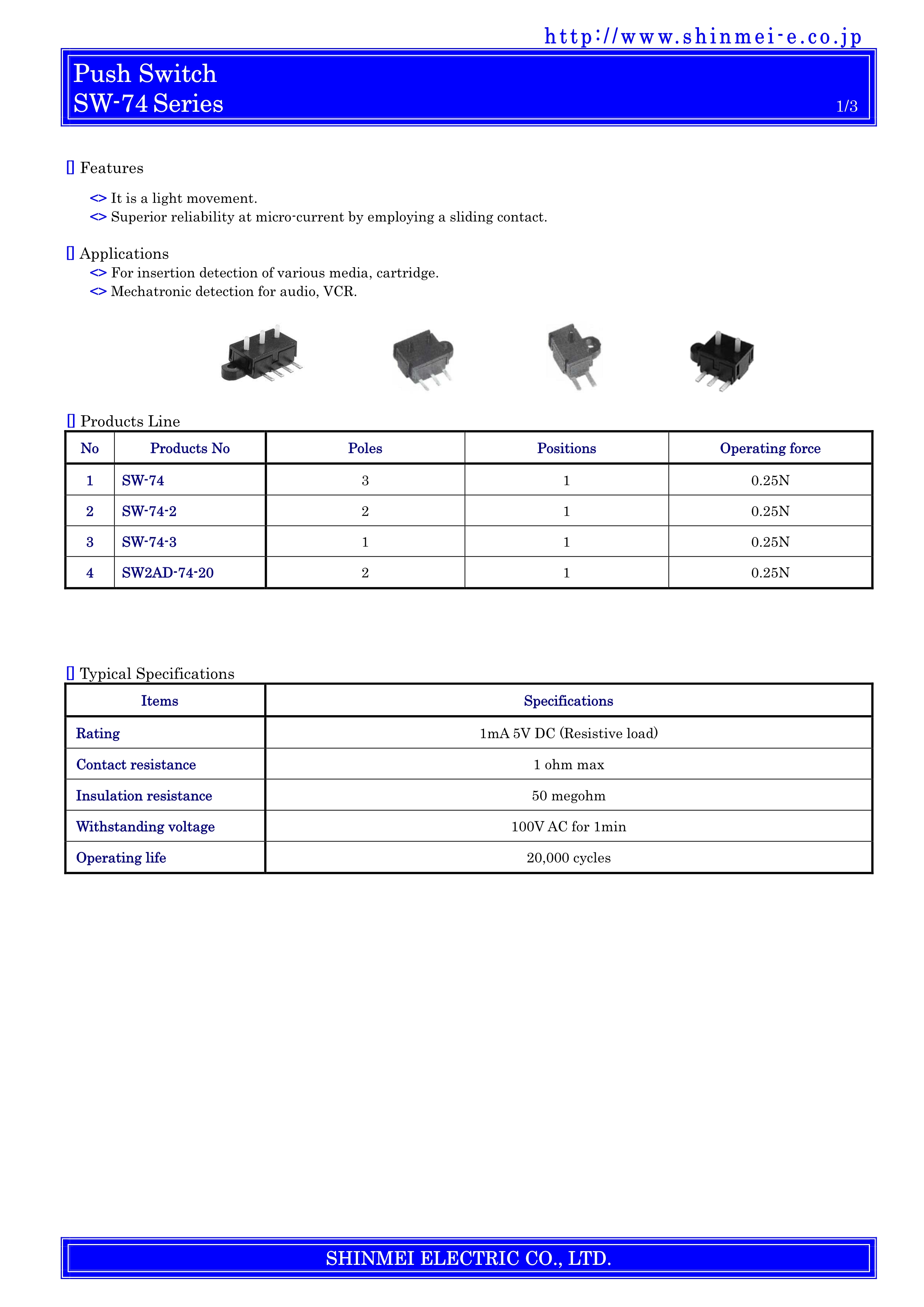 SHINMEI检测开关SW-74系列